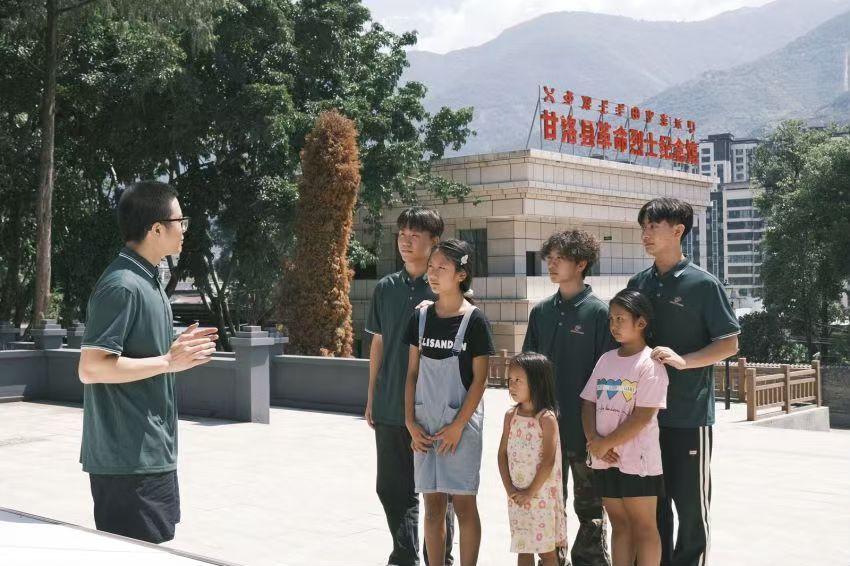 团队成员来到甘洛县烈士陵园,与当地小朋友一起朗诵红色经典诗文,向烈士致敬。团队带队老师金夏老师向团队成员和当地小朋友用普通话生动地讲述红色故事,带领大家学习并领会红色精神。团队成员也积极带领当地小朋友瞻仰烈士墓碑,教当地小朋友使用普通话读碑上的文字,为当地小朋友讲述英雄的故事。实践团队用声音传颂红色经典,让普通话的魅力深入人心。