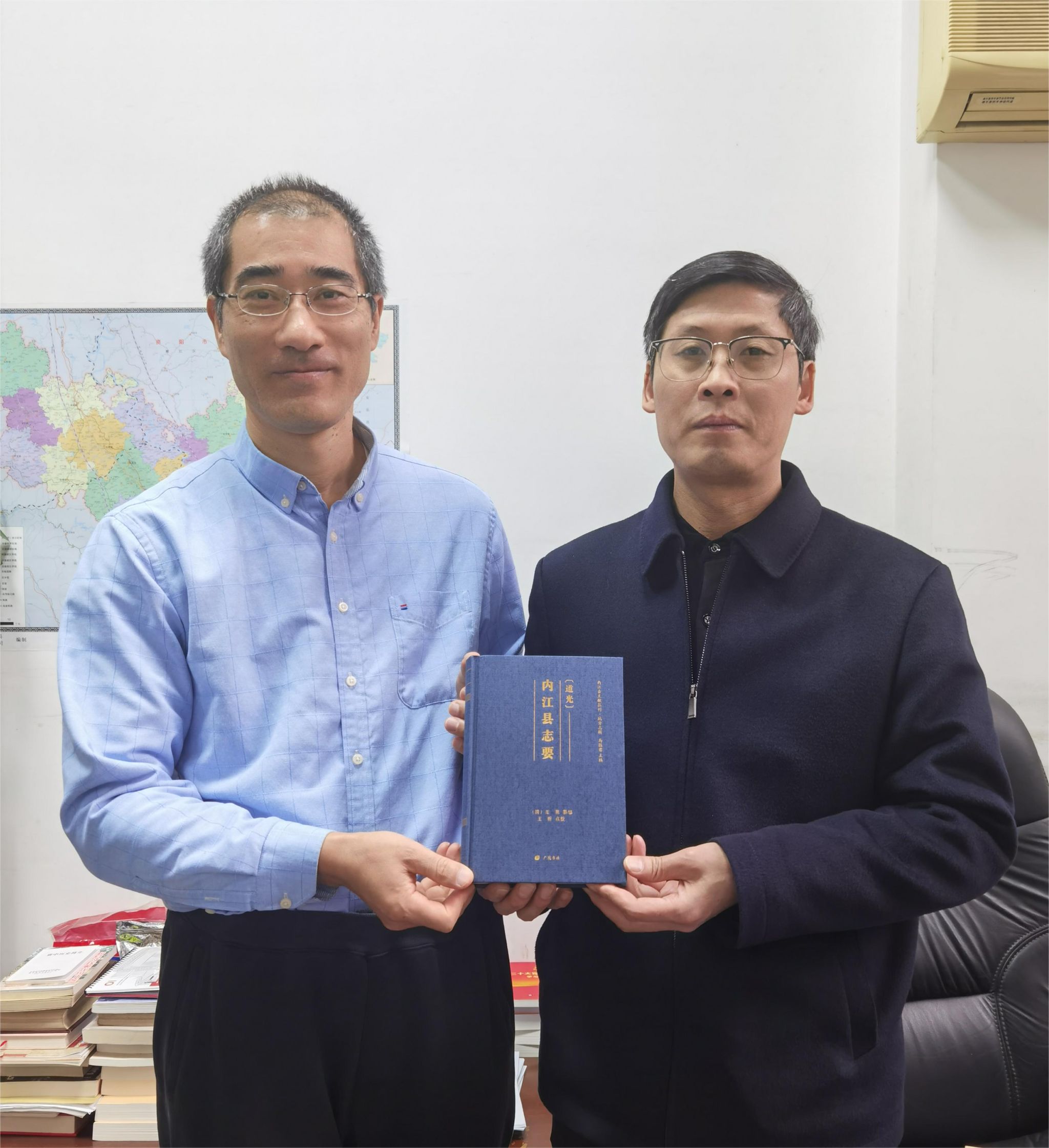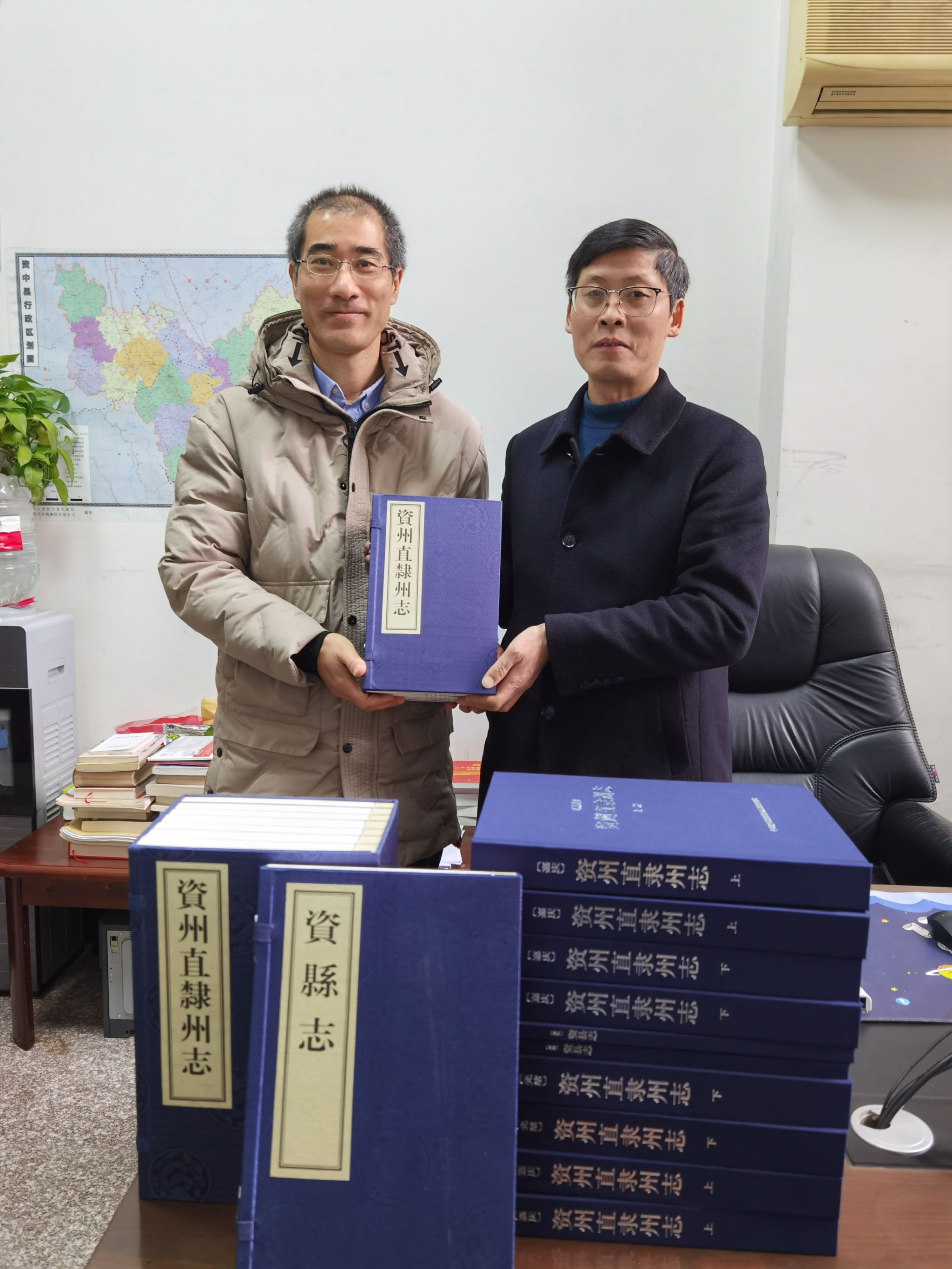 会后,马振君所长与朱兴勇主任分别代表tyc5997太阳集团古籍整理研究所与中共资中县委党史地方志研究室互赠书籍。
