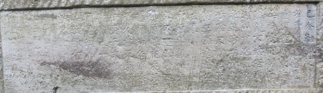此刻位于龙池左外侧。主体刻辞为隶书,虽有残损,尚可辨认。唯题款残泐太甚,时间已不可见,依稀可辨出“蘭若”“頌法顯”五字,馀则据上下文及残画推测得出者。