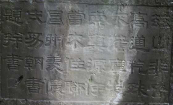 此刻位于曾刻下方。书法《张黑女墓志》。其中第一首首联对句“霽”字白文误识作“寄”,细查上部为“雨”字无疑,左下角为“丿”,右下为“丨”,且“霽”与上面的“雲”相对,故以作“霁”为是。