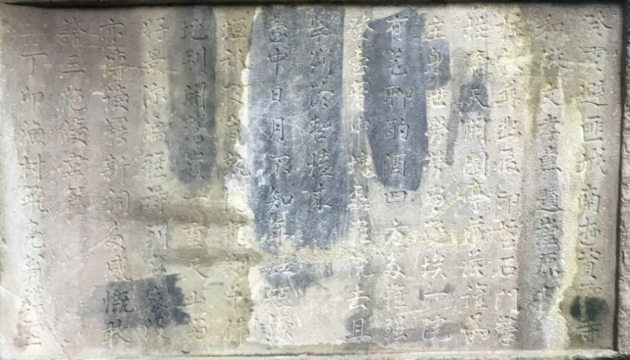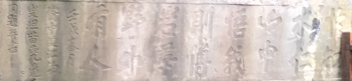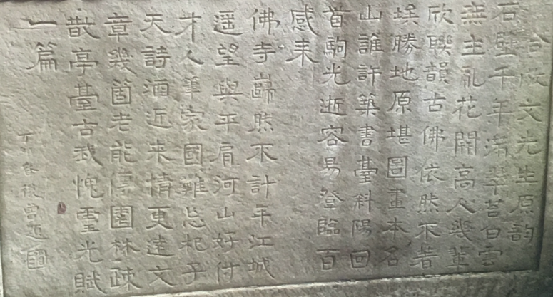 石刻内容:已分翔龍没蘚苔,雲堂霽意見重開。運如东海桑旋变,明到南華鏡不埃。從識河山真泡影,欲求乾淨在靈臺。寸隂尺壁君須寶,莫漫逡巡過去來。