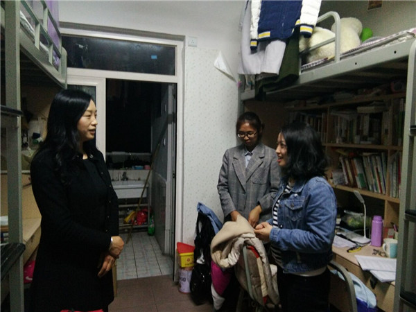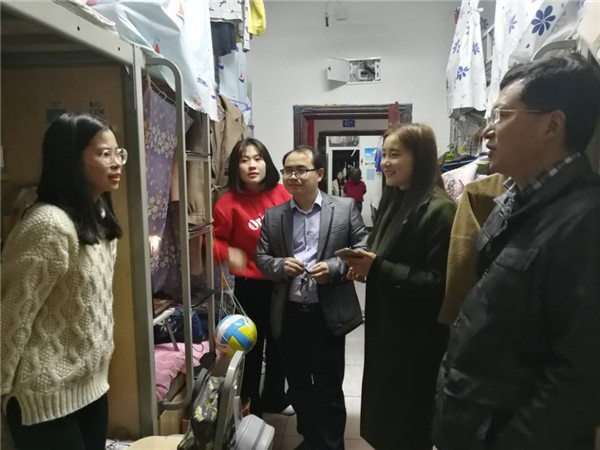 在大三、大四同学的寝室,老师们关切地询问了同学的学习情况,还在交谈中为部分员工解答了对于专业学习和未来职业道路选择上的疑问,为同学们排忧解难,让他们能更好的投入到新学期的学习、生活中去。