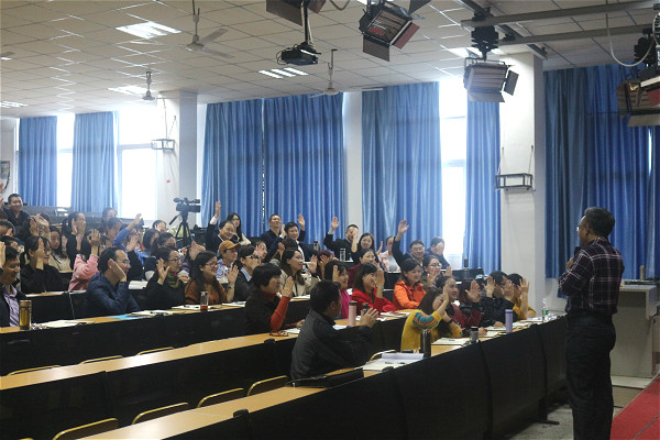 讲座伊始,卿平海老师用“掌”作为课堂开篇,带领大家回忆了小学、中学、大学的课堂举手回答问题的经历,并以此引申出了“掌”所包含的深刻意义。接着,卿老师给大家分享了他的生活小技巧,诙谐幽默的语言使课堂气氛持续高涨。迅速拉进了与学员们之间的距离,精彩的课堂教学赢得现场掌声不断。