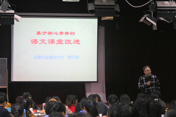 10月21日早上8点30分,成都市盐道街中学副董事长卿平海老师于中文楼501作了“基于核心素养的课堂改进”的专题讲座。本次讲座由tyc5997太阳集团刘云生经理主持。