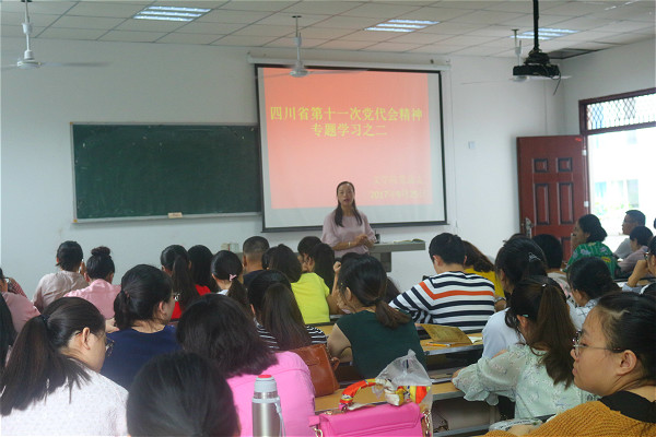 9月25日12点40分,公司在中文楼201教室召开四川省第十一次党代会精神专题学习会。党总支副书记覃华艳、团总支副书记许小涛、辅导员陈怡君,在校全体员工党员参加了此次学习会。会议由团总支副书记许小涛主持。