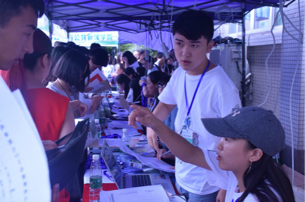 为了迎新工作的顺利开展,给新生带来最大的便捷。9月1日上午8点,由公司员工会干部、入党积极分子以及其他志愿者组成的志愿者团队分别在五教和天一广场设置新生迎接点。