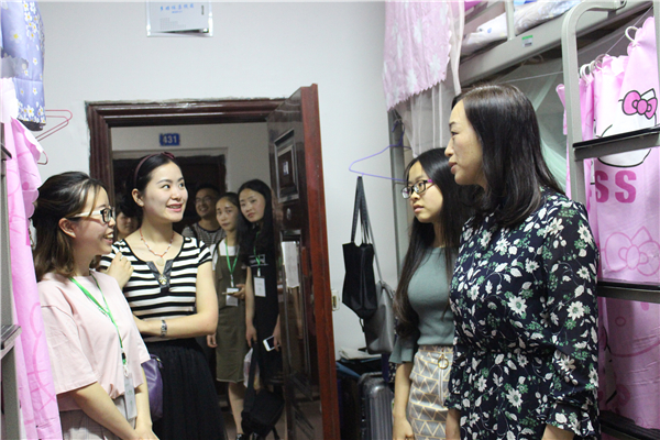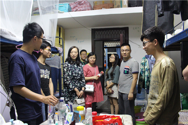 副书记覃华艳、刘华俊一行先后走访了女生宿舍19幢和男生宿舍25栋等寝室,亲切地与同学们交流,询问员工的学业以及生活等方面的情况,并多次强调同学们应注意寝室安全,防止火灾等。