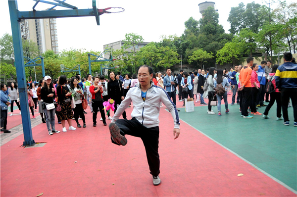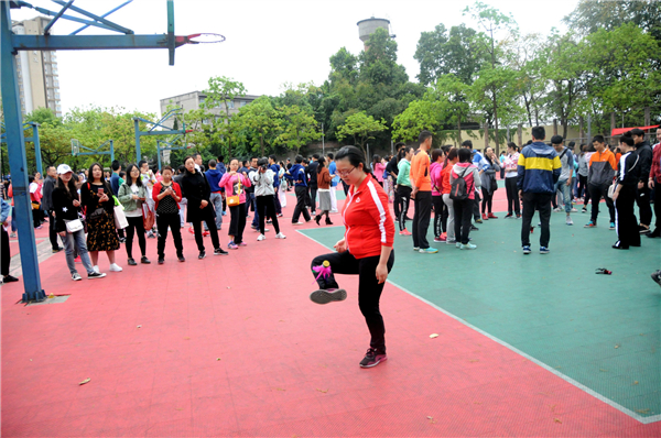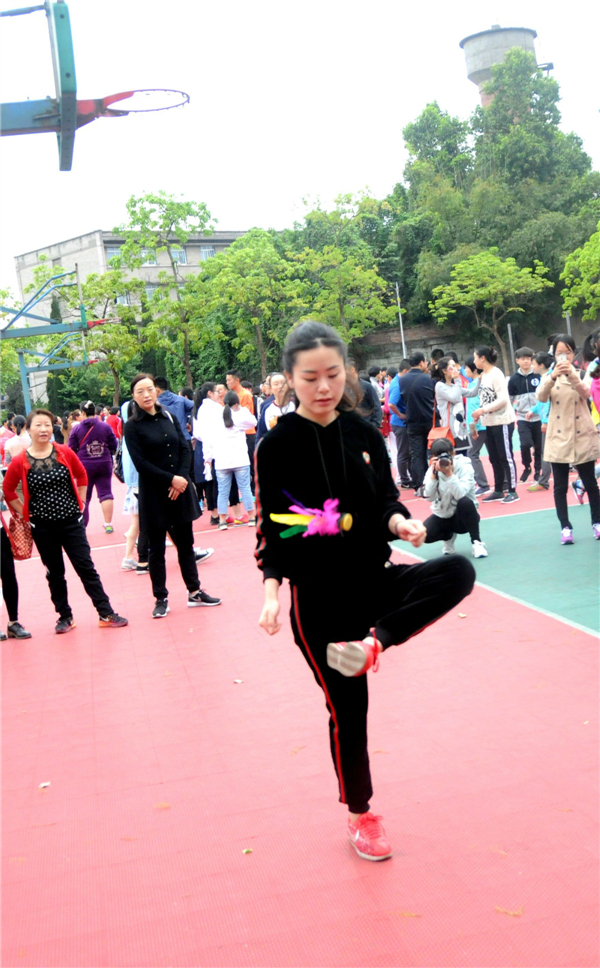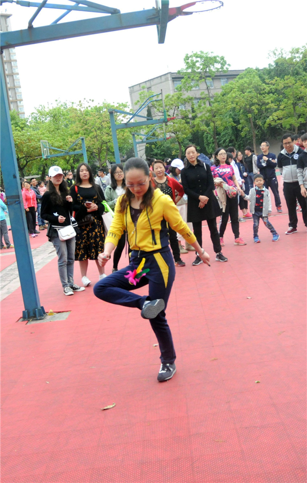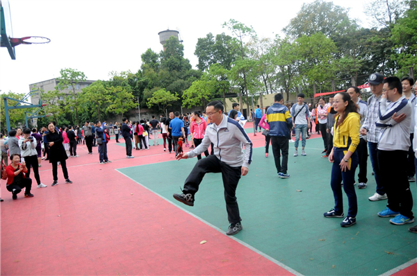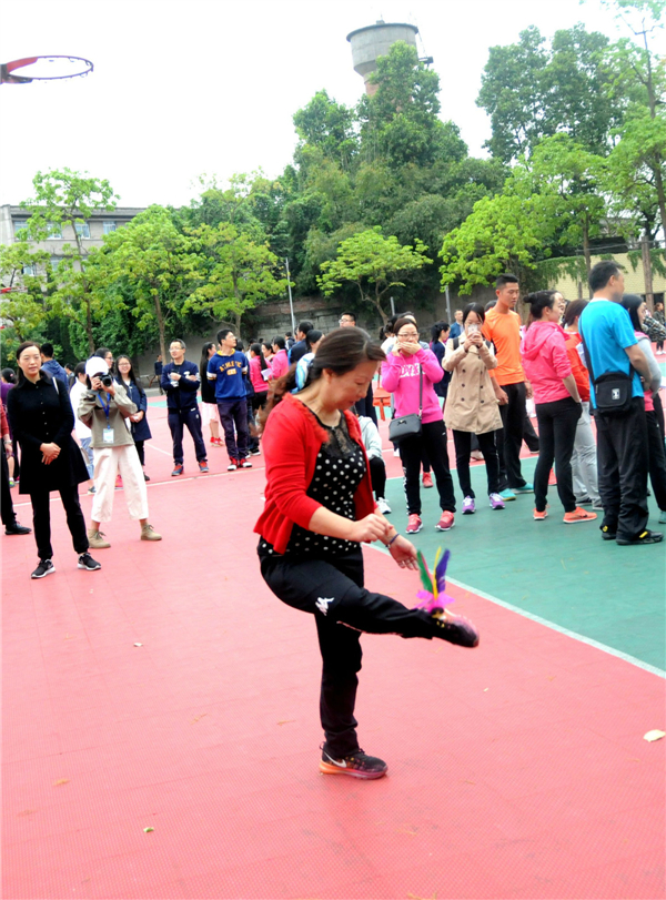 首先进行的是踢毽子比赛,由每个公司派出五男五女参赛,有两次踢毽机会,最后取最高成绩。老师们技法娴熟,用两只手指捏住毽子,轻轻往空中一送,毽子便像只轻盈的燕子,在空中旋转了一个完美的弧度后,稳稳地落在脚背上,随即又被踢向空中,参赛老师们的身体始终跟着毽子灵活地转动着,轻松愉悦地进行着比赛。公司最终的成绩是男子9个,女子35个。