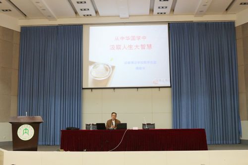 讲座伊始,揭晓兮员工讲述了在内江的生活经历和对内师的深厚情感,结合他自己的经历和其现在的工作讲述了国学的重要性,从而导入其讲座主题“从中华国学中汲取人生大智慧”。