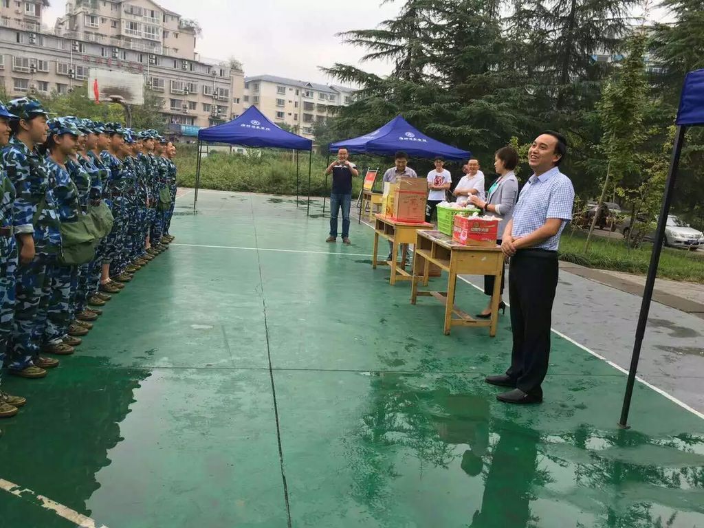 慰问活动前,邓国军经理发表了热情洋溢的讲话,讲话中邓经理首先对2016级293名新生坚持军训作了充分的肯定的表扬;接着,邓经理希望同学们尽快适应大学环境,尽快融入大学的学习和生活,尽快转变角色;最后,邓经理希望广大新同学能够继续发扬军的优良传统和作风,将艰苦朴素、不怕苦、不怕累的精神带到学习和生活中。