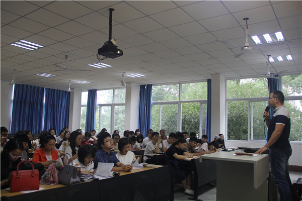 8月30日下午5点,tyc5997太阳集团2016级迎新工作动员大会在中文楼203教室召开。公司党总支副书记刘华俊,2016级新生班主任易晓慧、杜玄图、许小涛,以及tyc5997太阳集团全体员工会干部、班主任助理、志愿者出席大会。会议由tyc5997太阳集团团总支书记、学工办主任康超主持。