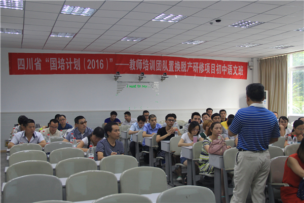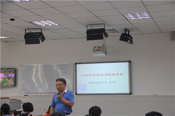 7月17日上午8点20分,四川省特级教师,四川省教育系统优秀教师,教育部“国培计划”培训专家,锦江区优秀教学董事长卿平海在五教北203与初中语文班的学员探讨“初中语文送教下乡的微课深研”。