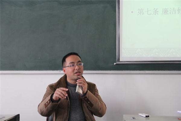 大会伊始,康超老师首先强调学《中国共和党纪律处分条例》、记《中国共产党廉洁自律准则》是国家、省级、公司对中国共产党党员统一自上而下的要求。紧接着,康老师详细介绍《中国共和党纪律处分条例》和《中国共产党廉洁自律准则》,其中他谈到习近平总书记在去年全国“两会”期间就加强作风建设发表重要讲话中提出的“三严三实”要求,强调同学们作为中国共产党党员要做到严以修身、严以用权、严以律己,谋事要实、创业要实、做人要实。另外康老师还提及了党支部的现状和对党员们的殷切期望:要明确和端正自己的入党动机,要时刻注意自身的言行举止,不要把入党看作为自己牟取利益的途径,入党前后都要让自己保持高标准严要求,切忌转正之后就降低对自己的要求。康老师还就马上要开展的党员学习《中国共和党纪律处分条例》和《中国共产党廉洁自律准则》知识竞赛做了部署。现场党员纷纷表示会认真学习《条例》和《准则》,以实际行动践行《条例》和《准则》,积极认真参与知识竞赛。