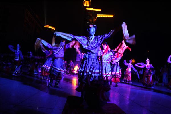 最后一个压轴节目就是集体跳锅庄,伴随着跳跃的篝火、跃动的旋律,在场的观众和演员携手共舞。大家共同体会民族文化的风韵与魅力,感受民族舞蹈带来的快乐,众人手拉手,围着篝火跳动,共同欢庆少数民族新年,欢声笑语接连不断,展现了当代老员工的青春活力,