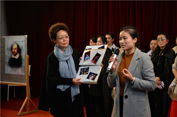 朗诵结束后,首先由本次表演的艺术指导王彤老师对各个节目进行点评,对演出效果给予了肯定,并分别对各个节目进行了表扬,表示作为一堂教学实验课在如此简陋的条件下取得如此成功与13级2班的全体同学的共同努力是分不开的。她更希望老员工们在今后的日子里学会用经典表现生活。随后翁礼明书记上台讲话,他对今天的表演给予了肯定,尤其是高度赞扬了《威尼斯商人》一组,并表示会将莎剧表演登上迎新晚会的舞台。刘华俊副书记对于此次表演中同学们热情表演而感动,并鼓励学子们学习经典,传承莎翁经典文化,丰富老员工活。