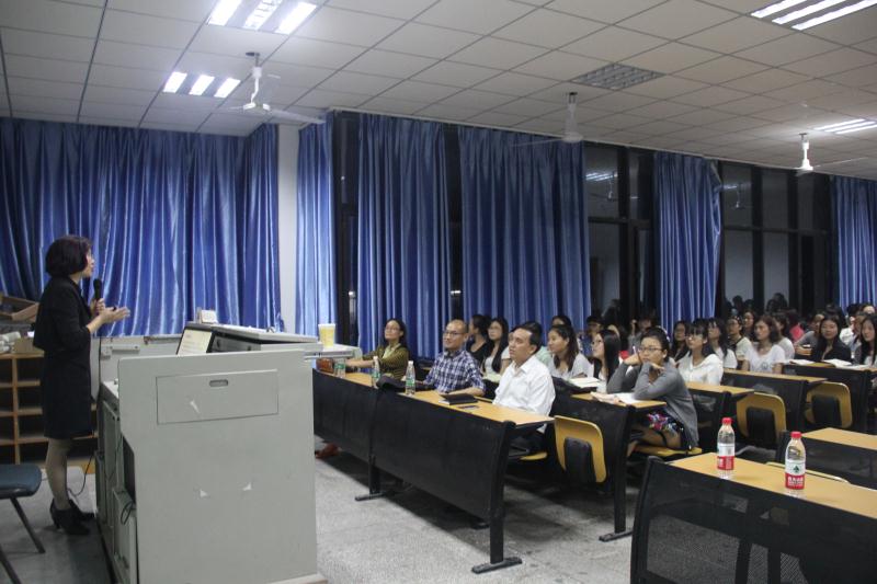 在互动环节,李董事长提出了“软与硬能力在工作中的比例分别是多少?”的问题,同学们思考后回答不一,她便作出了解答:“80%软能力,20%硬能力。”随后,2014级2班石国英同学、陈婉媛同学与李雨征董事长进行了互动,李董事长举出“索爱手机”的例子,向大家说明了合作共赢的重要性。