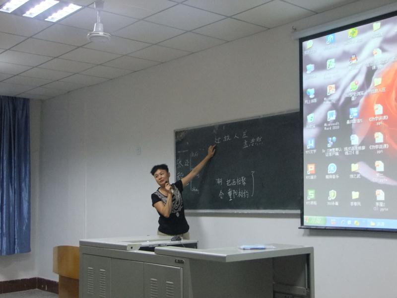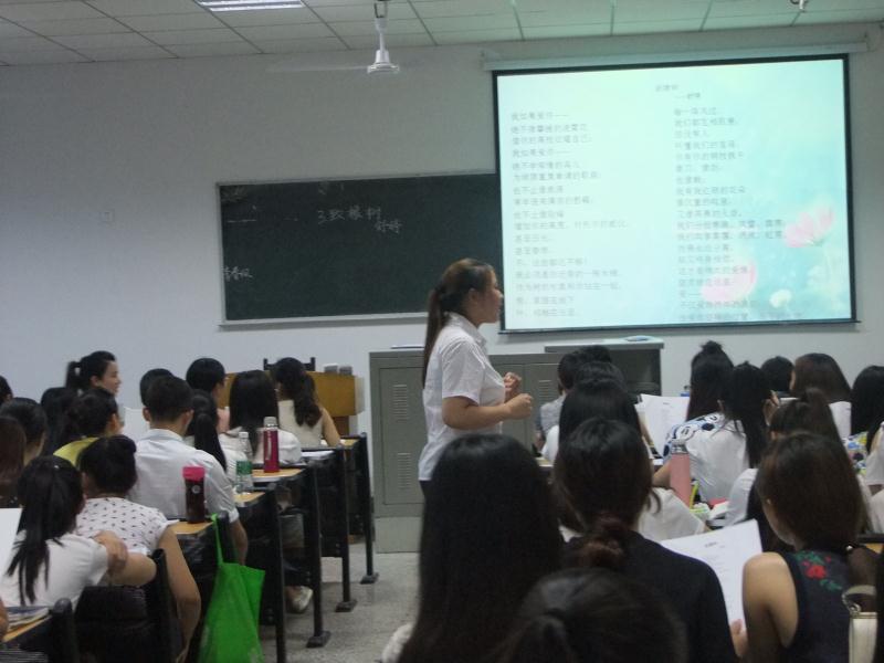 四位试讲者分别以《荀子.劝学》、舒婷诗歌《致橡树》、孟浩然《过故人庄》以及人教版七年级上册课文《在山的那边》进行试讲讲课。试讲者选择了中学课文诗歌为讲课内容,着重带领“员工”学习生字词,领会诗歌、课文中作者诗人的情感主题,带给员工以美的感受体验。试讲《致橡树》时,2012级2班李春凤以一首影视金曲《我心永恒》带领员工进入课堂,在员工分男女角色朗诵诗歌后并对其提问,和员工们一起分析诗歌物像蕴含的情感。主要以“引导员工树立正确的爱情观”为教学重点,课堂气氛也在她带领下活跃起来。
