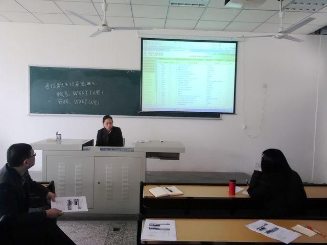 会上,辅导员范佳佳老师首先通过就业工作帐号(班主任帐号和员工帐号)演示了系统操作步骤,通过就业系统的数据分析了当前各毕业班就业状况。