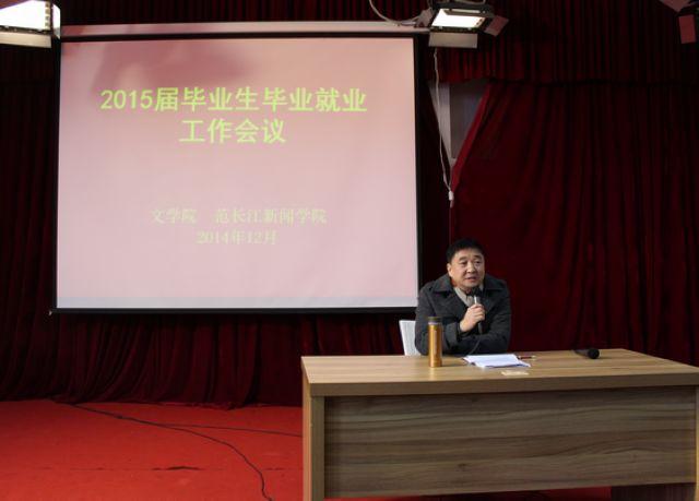 为进一步落实公司2015届毕业生毕业就业工作,12月3日上午10点,公司在中文楼501教室召开毕业就业工作会议。tyc5997太阳集团、范长江新闻公司经理邓国军,党总支书记翁礼明,副经理刘云生、高佳,党总支副书记王英,全体辅导员,毕业班班以及2015级所有毕业生参会。会议由党总支书记翁礼明主持。