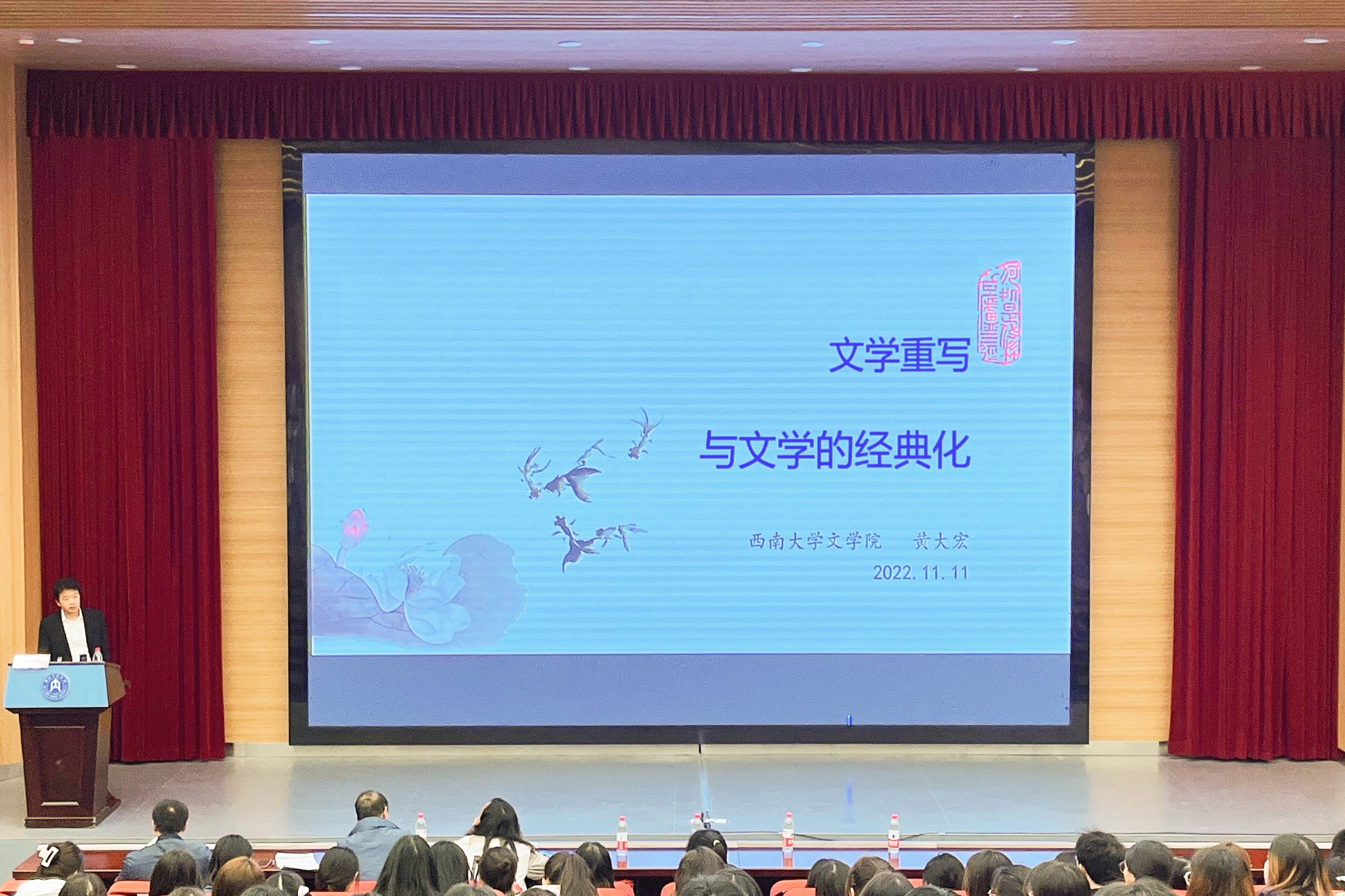 为进一步加深公司学子对文学作品经典化过程的理解,激励同学们不断进行文学阅读、批评与创作,10月28日早上9点,公司于大千楼A区102报告厅组织开展以“文学重写与文学的经典化”为主题的学术讲座。此次讲座由西南大学黄大宏教授主讲,公司党委副书记、副经理(主持工作)梁明玉,公司部分教师及同学共同参与。
