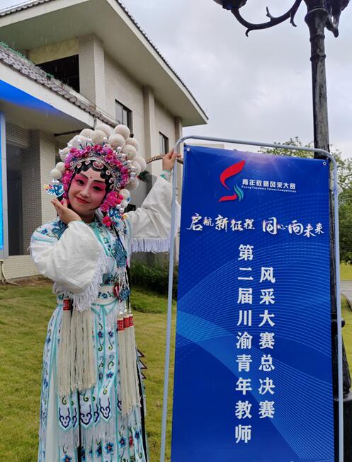 川渝教师青年风采大赛由重庆市教委和四川省教育厅联合主办,旨在以赛促建高素质教师队伍,建设高质量人民满意的教育。第二届青教赛有来自川渝各市(州、区、县)公司、有关高校共计3658名教师报名参加初赛,986名教师进入复赛。通过专家评审、大众网络评选等程序,川渝两地共计30名高校教师赛区教师进入高校组决赛。 地点设了在重庆第二师范公司演艺厅,现场尽显青年教师风采。决赛包括即兴演讲以及个人才艺展示两个部分。阳霞老师在即兴演讲中以题目“师也者,教之以事譬诸德也”层层展开演讲,理据充分,自然流畅,才艺展示部分以川剧和书法艺术表演“别洞观景”赢得了评委和观众的热烈掌声,展示了新时代青年教师以德立身、以德立学、以德施教的奉献精神和时代担当。