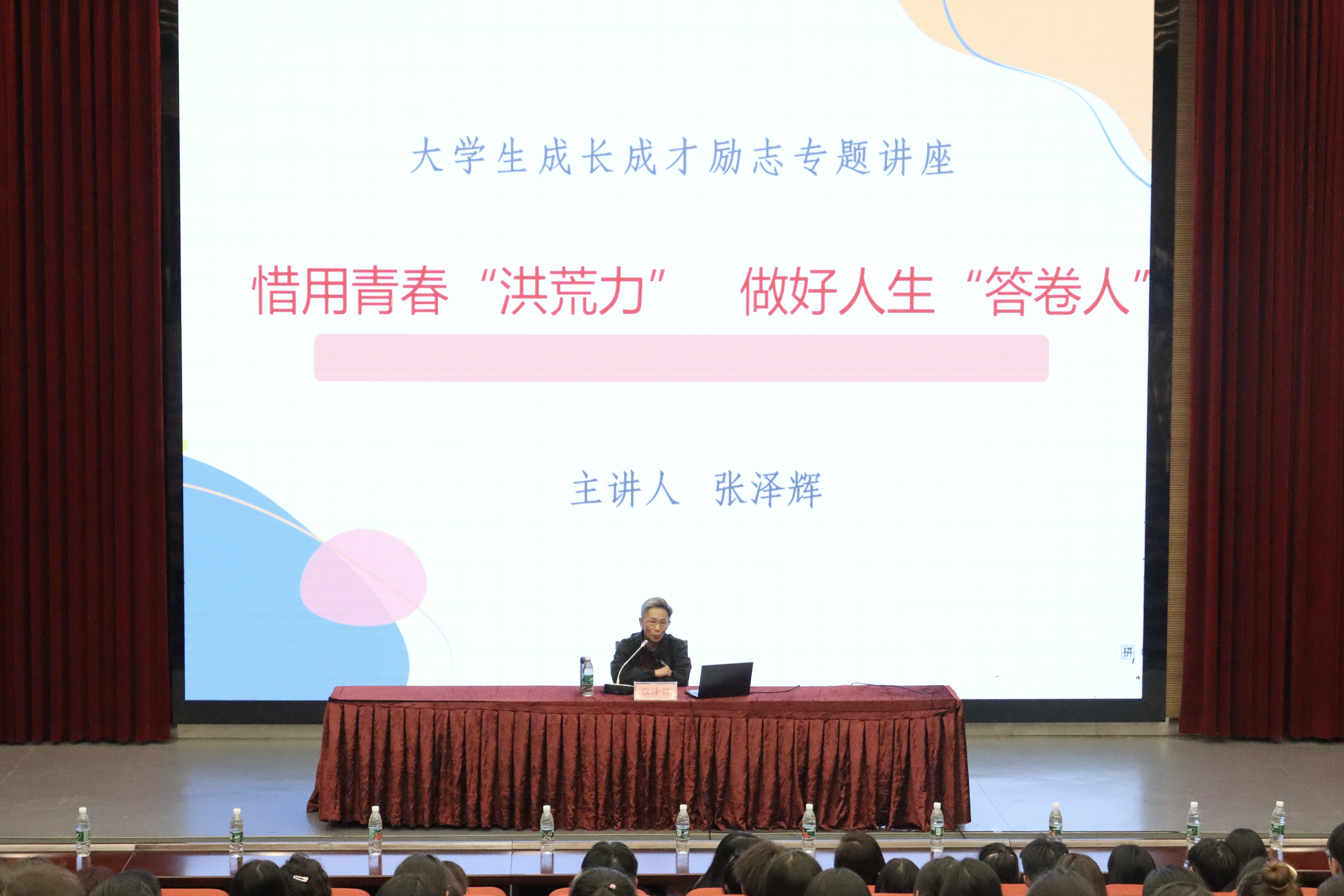 讲座伊始,张泽辉老师生动地讲述了自己三十八年来从事高等教育的人生经历,并以“老员工的现状略览”为引揭示了当今部分老员工的状态——“沉睡”中的老员工。随后,针对这一现象,张泽辉老师向同学们讲述了央视采访节目中来自中国员工的诉求,并将国内外老员工的不同学习阶段进行对比,从中总结出了三大原因:“没有目标、动力殆尽、放任自流”。紧接着,张泽辉老师以厦门大学教授易中天及原北京大学董事长蔡元培先生的讲话为例阐述了“欲成才,先成人”这一观点,希望同学们做一个有责任、有担当、有信仰、有追求的人。讲座最后,张泽辉老师解答了大学“三问”:至于为什么读大学,张泽辉老师指出,大学不是目标,更不是终点,而是一个崭新的开始;至于读什么样的大学,张泽辉老师指出,高考并非决定一生,要努力奋进,出类拔萃;至于怎样读大学,张泽辉老师指出,同学们要有明确的目标,可行的规划,坚韧的耐力。本次讲座持续两个半小时,张泽辉老师的演讲贴近现实,例证丰富,讲座最终在热烈的掌声中圆满落下帷幕。