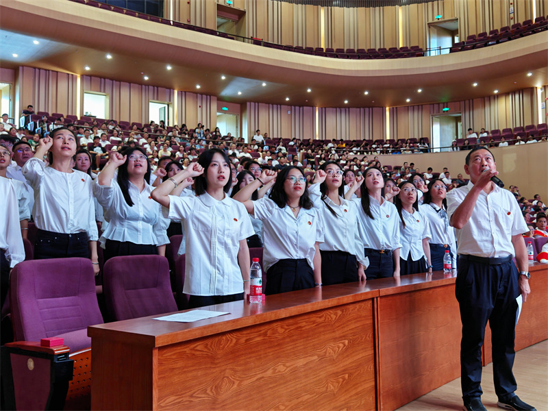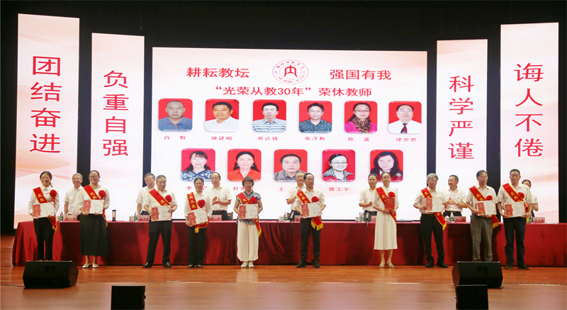 大会首先播放了一段视频,视频中是过去的一年里,全体师生员工辛勤工作,开拓创新,促进了公司事业的高质量发展。看完视频,陈晓春董事长代表公司向全校教职工表示感谢并致以节日的祝贺。紧接着,校领导们为优秀教师代表颁发证书,其中包括了公司优秀教师李厚琼老师和阳霞老师。然后由副董事长赵明带领2022-2023学年度新入职的51名教师庄严宣誓,整齐有力的宣誓声表达了新任教师们“一心为学,两袖清风 三尺讲台,四季耕耘”的坚定决心。