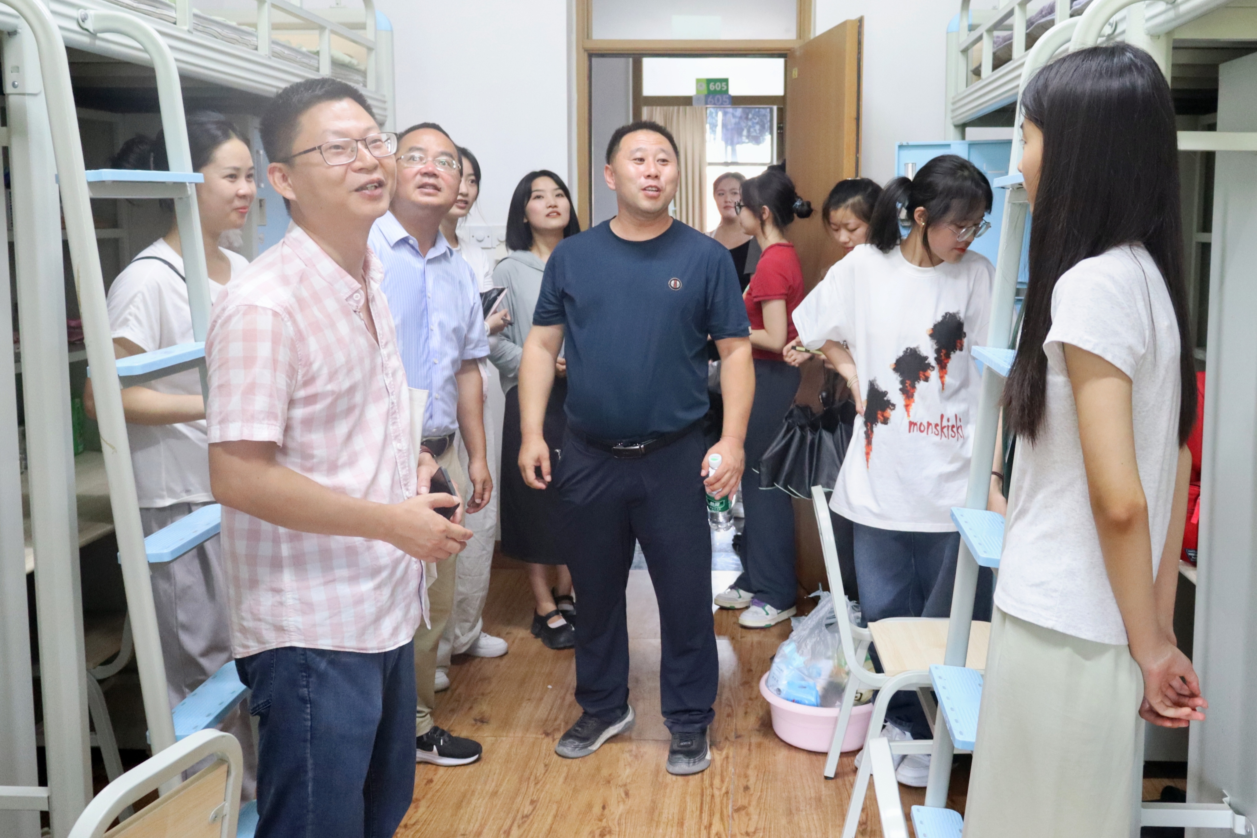 为深入了解公司2023级新生的入住情况,增强新生安全意识,进一步加强宿舍安全管理,引领新生更快适应校园环境。9月9日下午5点,公司党委书记周艺,党委副书记、副经理(主持工作)梁明玉,党委副书记、纪委书记刘正丽,副经理于军民,经理助理王昕,公司学工办副主任金夏,学工办辅导员汤靓老师、甘成望老师、雷业老师及2023级6班班主任董喆老师、2023级7班班主任钟思远老师一同走访公司新生寝室。