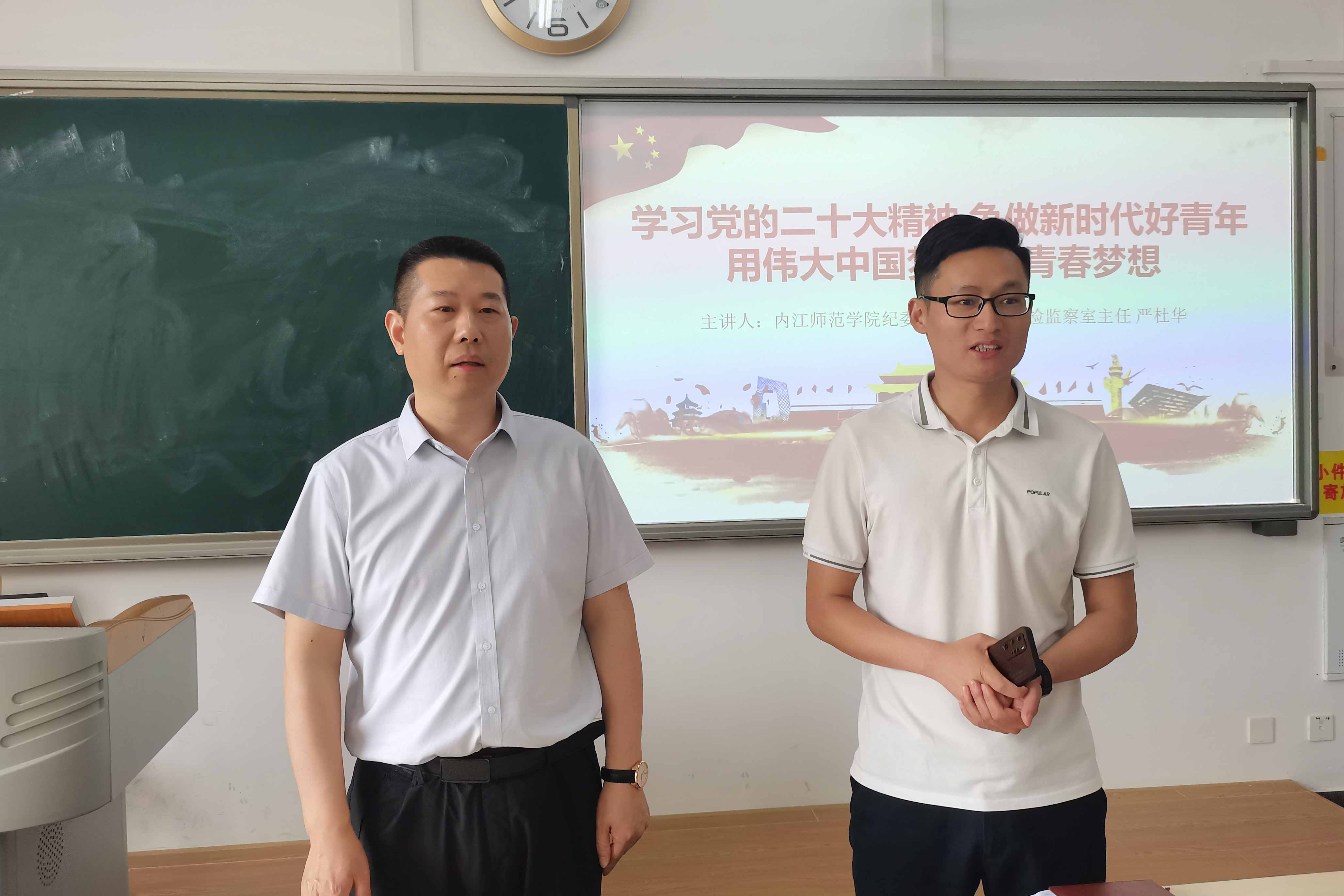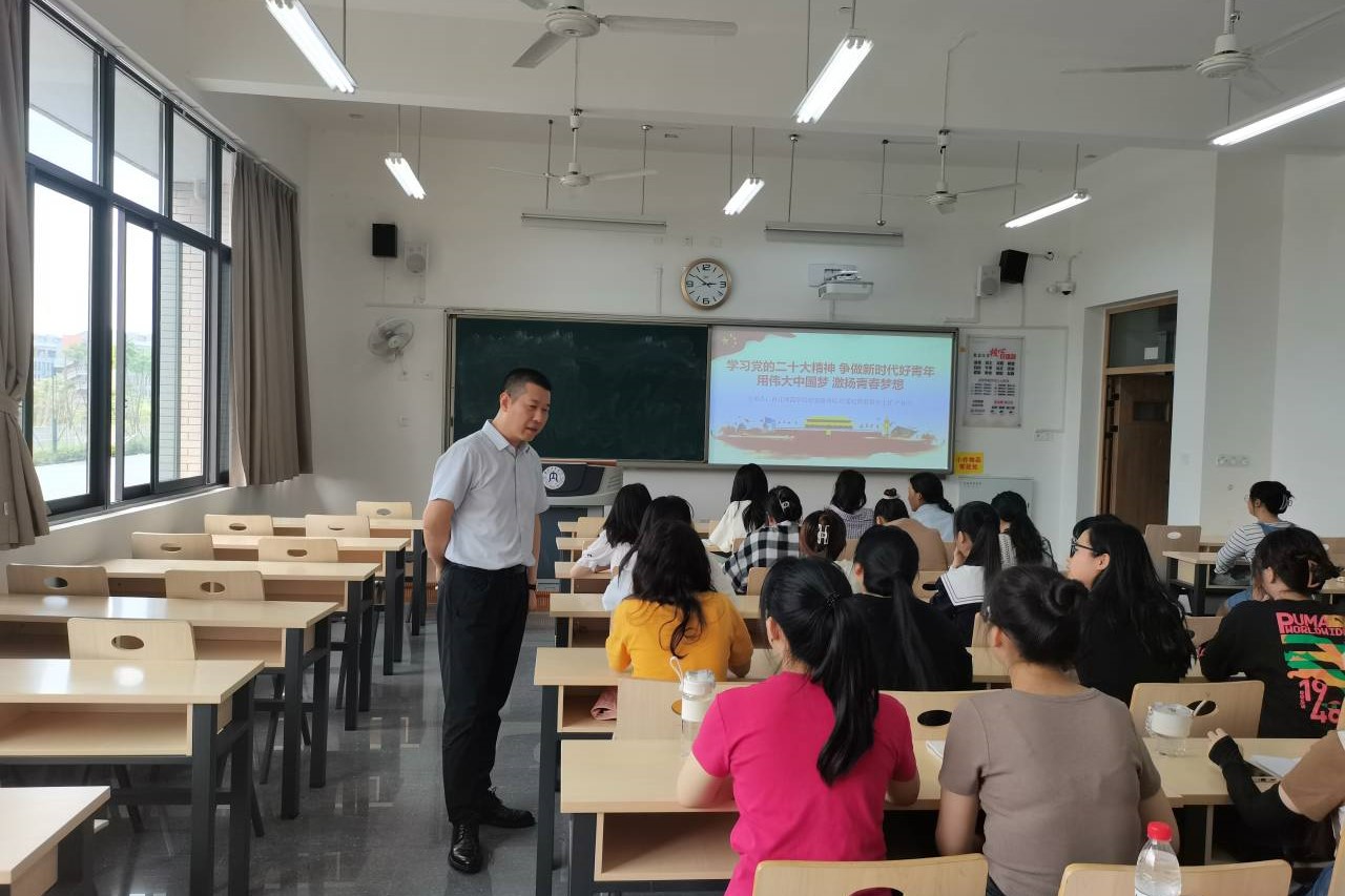 严书记为联系班级开展了“学习党的二十大精神,争做新时代好青年,用伟大中国梦激扬青春梦想”的专题讲座。在讲座中,严书记运用大量详实的数据和图片资料,将“大理论”与“小故事”相结合,并从深刻把握党的二十大召开的重大意义、深刻把握党的二十大主题和主要成果、深刻把握过去5年的工作和新时代10年的伟大变革等七个方面对党的二十大精神作了系统宣讲和深入阐释。随后,严书记对党的二十大报告进行解读,梳理了党的二十大报告的重点要点,着重提出要深刻领会习近平总书记在党的二十大报告中对广大青年寄语“立志做有理想、敢担当、能吃苦、肯奋斗的新时代好青年”。紧接着,严书记就本次讲座主题让同学们展开交流谈论,并进行学习心得分享,大家书写感受,畅谈体会,纷纷表示,将牢记习近平总书记嘱托,在新征程中砥砺奋斗,做走在时代前列的奋进者、开拓者、奉献者。最后,严书记寄语同学们,要做理想远大、信念坚定的模范;要做刻苦学习、锐意创新的模范;要做敢于斗争、善于斗争的模范;要认真学习,努力去开创和谱写充实而精彩的老员工活;要立定目标,不负青春,开启人生发展的新起点。