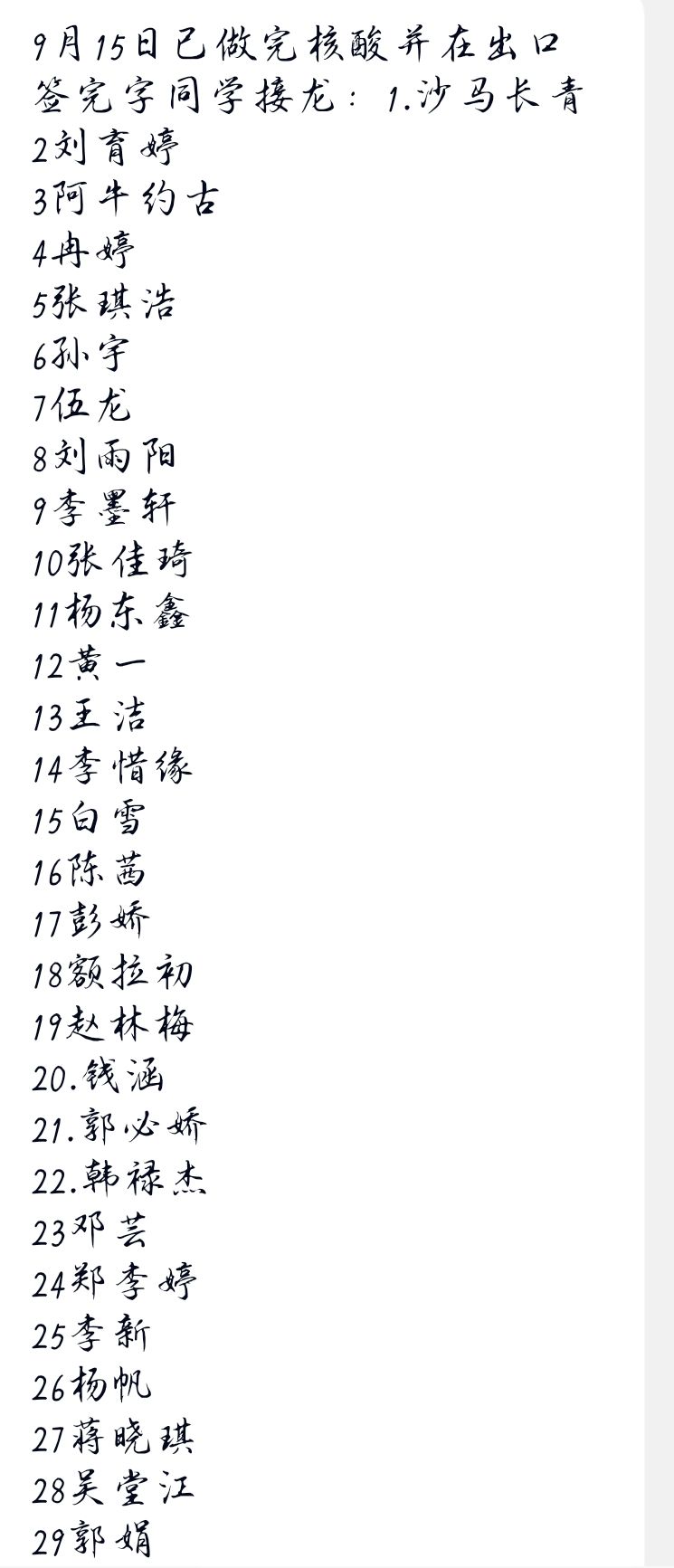 公司通过员工辅导员、各班班长等充分了解每一位师生的所在位置、身体状况、返程计划等信息,严格落实“日报告,零报告”制度并保持动态联络,保证防疫预警信息精确、及时、全面。每日在群里进行接龙,确保公司防疫领导小组及时了解到有效信息,及时到位展开相关防疫工作部署,同时明确专人负责师生相关信息的收集和统计工作。