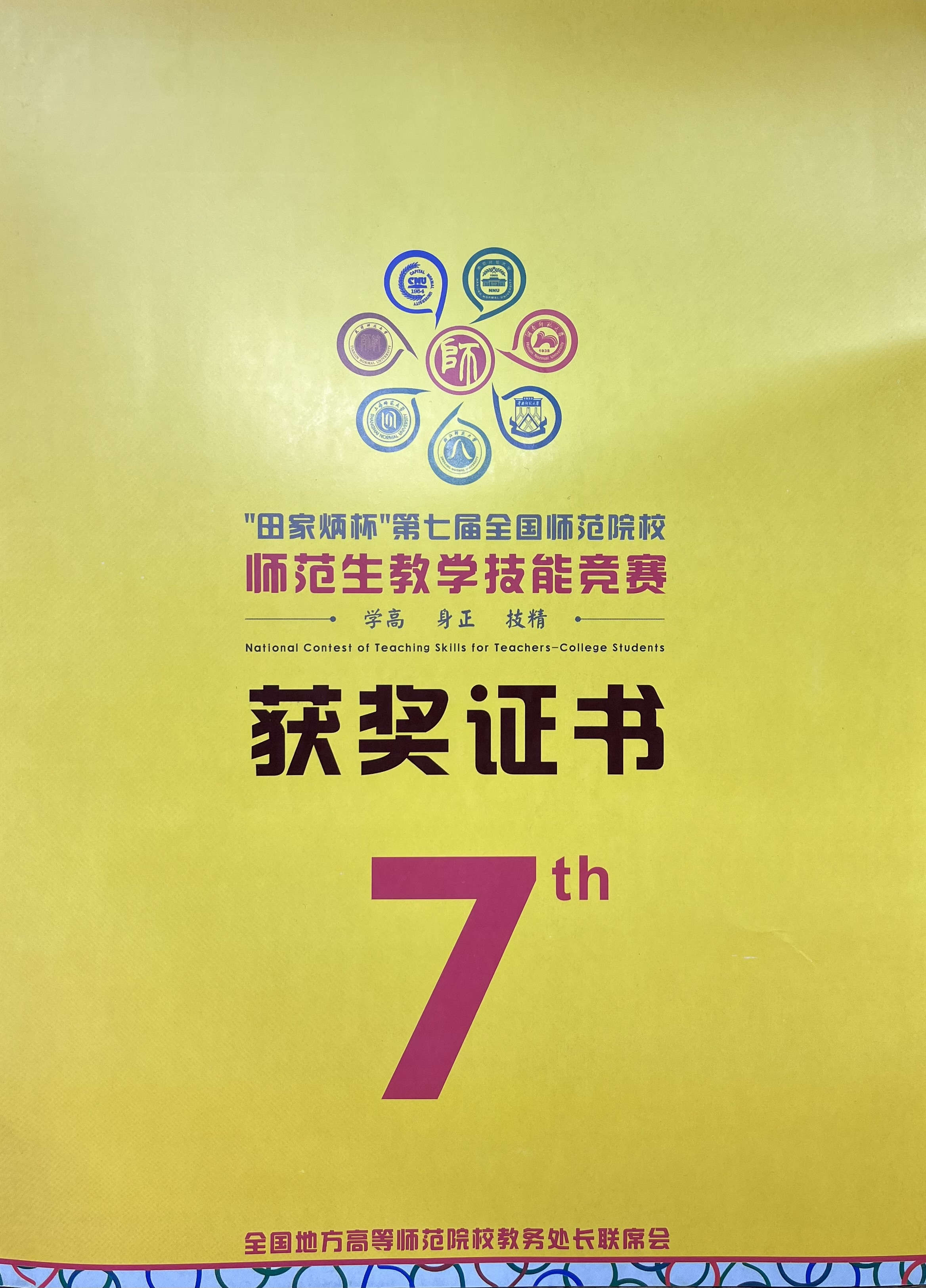 此次竞赛共有147所院校的890名选手参加,全程采用线上线下相结合的方式举办。在初赛中,王志通同学选取《春江花月夜》作为参赛主题,精心备课,不断完善教案与说课稿件,最终脱颖而出,获得决赛资格。本次决赛采取48小时限时抽题比赛制,以线上抽题、线下实施、视频实录、限时提交、在线评审的方式进行。在紧张而又刺激的比赛中,王志通同学凭借巧妙的教学设计,行之有效的教学活动、活跃的师生互动获得了评委的青睐,经过激烈角逐,最终斩获全国一等奖。