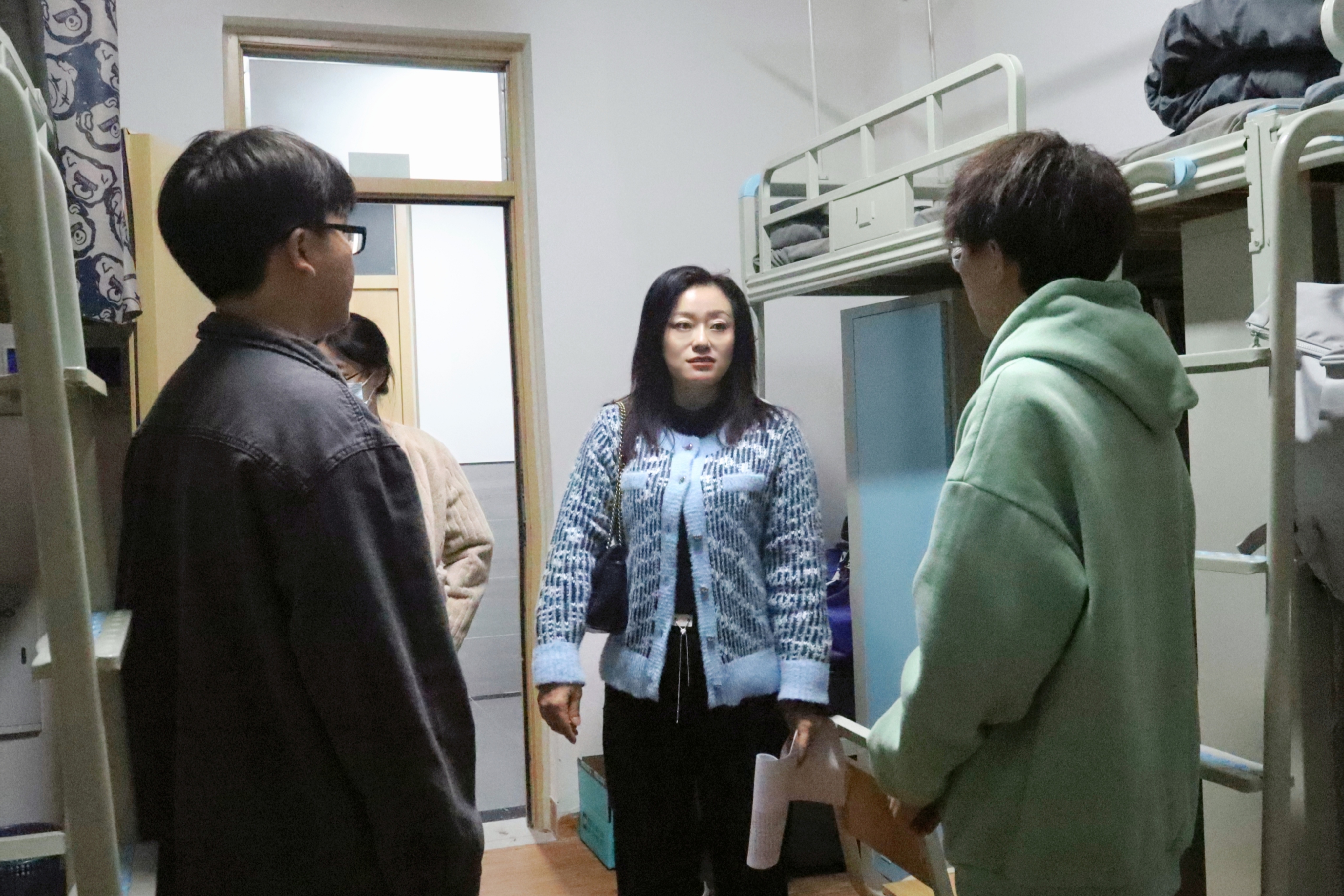 在走访过程中,老师们检查了各寝室的卫生和用电情况,重点排查是否存在违规使用大功率电器、私拉乱接电线电线、插排使用不当等安全隐患。同时,老师们和大家亲切交流,倾听同学们在学习和生活中的困惑,给出积极的反馈和宝贵的建议,并特别提醒同学们要时刻注意用电安全,防微杜渐,筑牢校园消防安全防线。