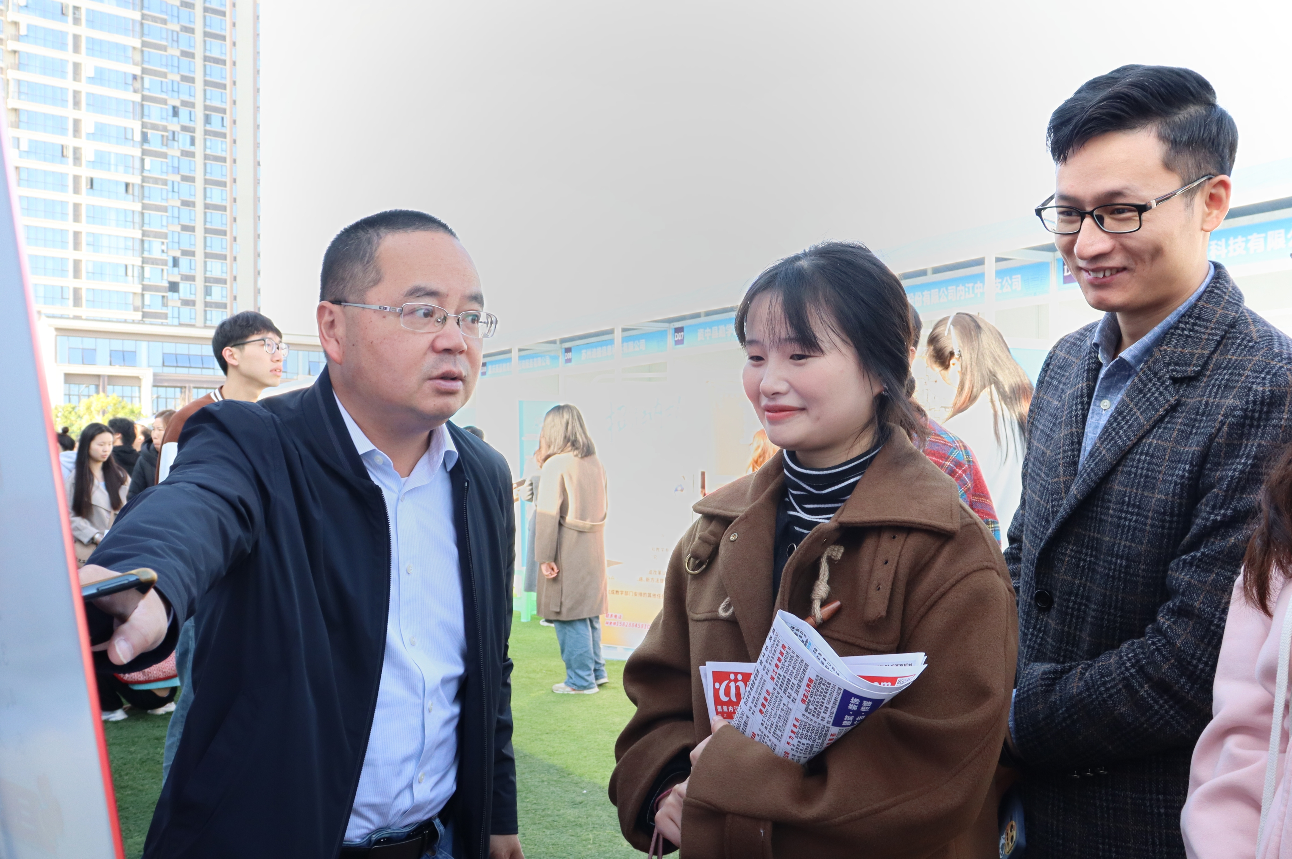 此次双选会,公司党委书记周艺,党委副书记、副经理(主持工作)梁明玉,副经理于军民,经理助理王昕,学工办副主任金夏老师,学工办辅导员甘成望老师亲临现场,与招聘方积极交流,在进一步了解人才市场需求变化的同时,向用人单位热情地引荐公司优秀毕业生。一直以来,公司老师高度关注毕业生的就业情况,始终秉持着“员工未来发展为先”的准则,在现场他们以高度的责任感和真挚的关切,和同学们交流心得体会,传授经验,答疑解惑,为同学们的就业保驾护航。
