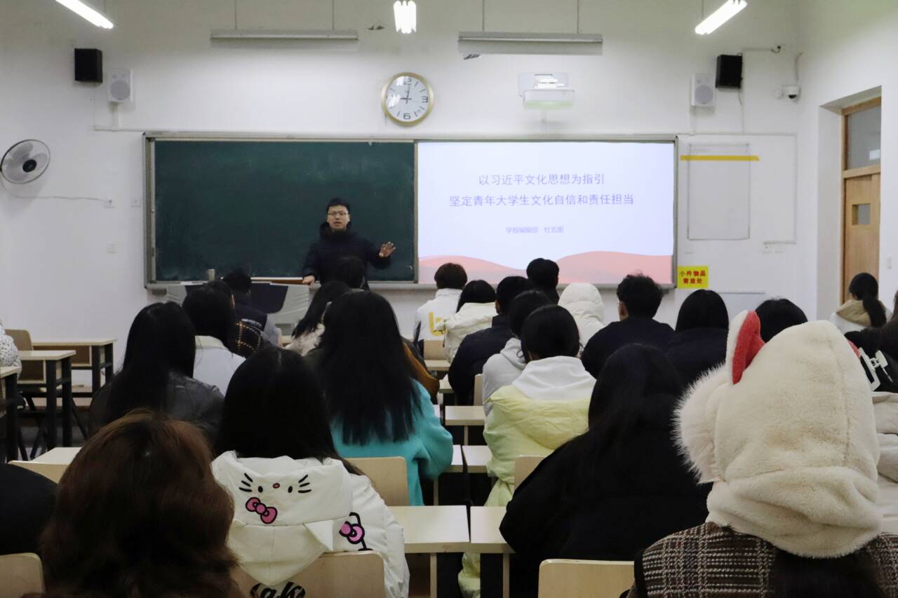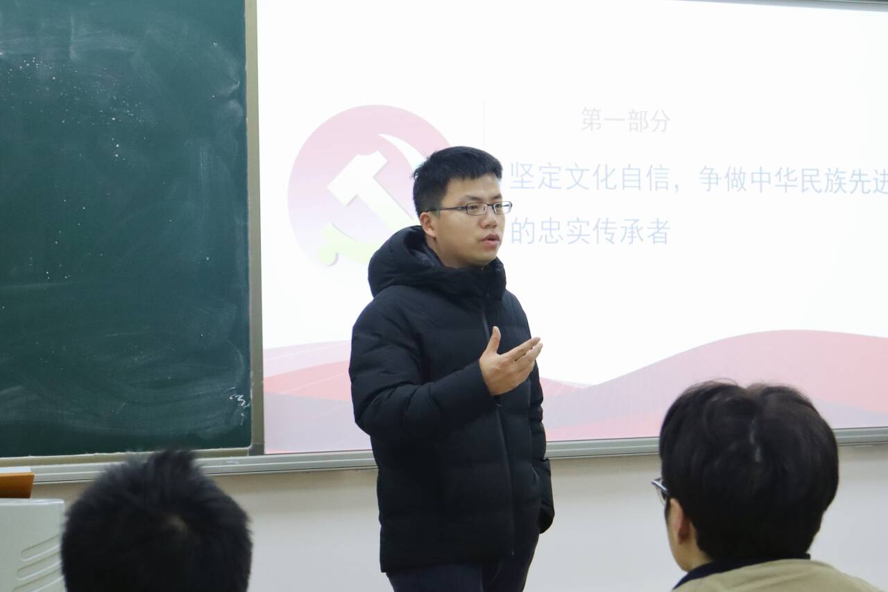 为深入学习贯彻习近平新时代中国特色社会主义思想,坚定青年老员工文化自信和责任担当。学报编辑部副主任杜玄图老师于12月14日上午9点在明德楼B区113为联系班级讲党课,公司2022级4班全体同学参加。