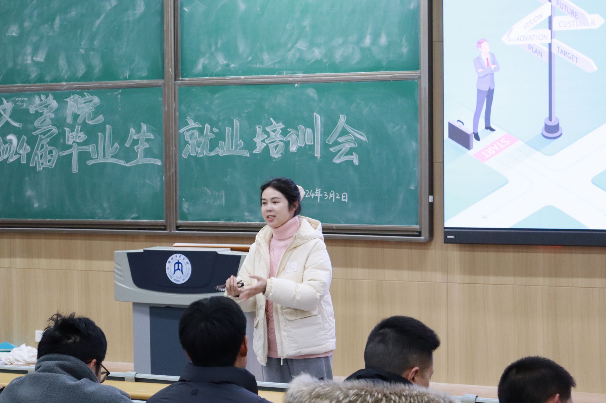 为提升毕业生的就业竞争力,引导毕业生积极投身社会建设,3月2日晚上7点,公司于明德楼B区112教室召开2024届毕业生就业培训会。公司党委书记周艺,党委副书记、纪委书记刘正丽,公司学工办副主任金夏老师,学工办辅导员汤靓、雷业老师出席本次会议,公司2020级员工参与此次会议。