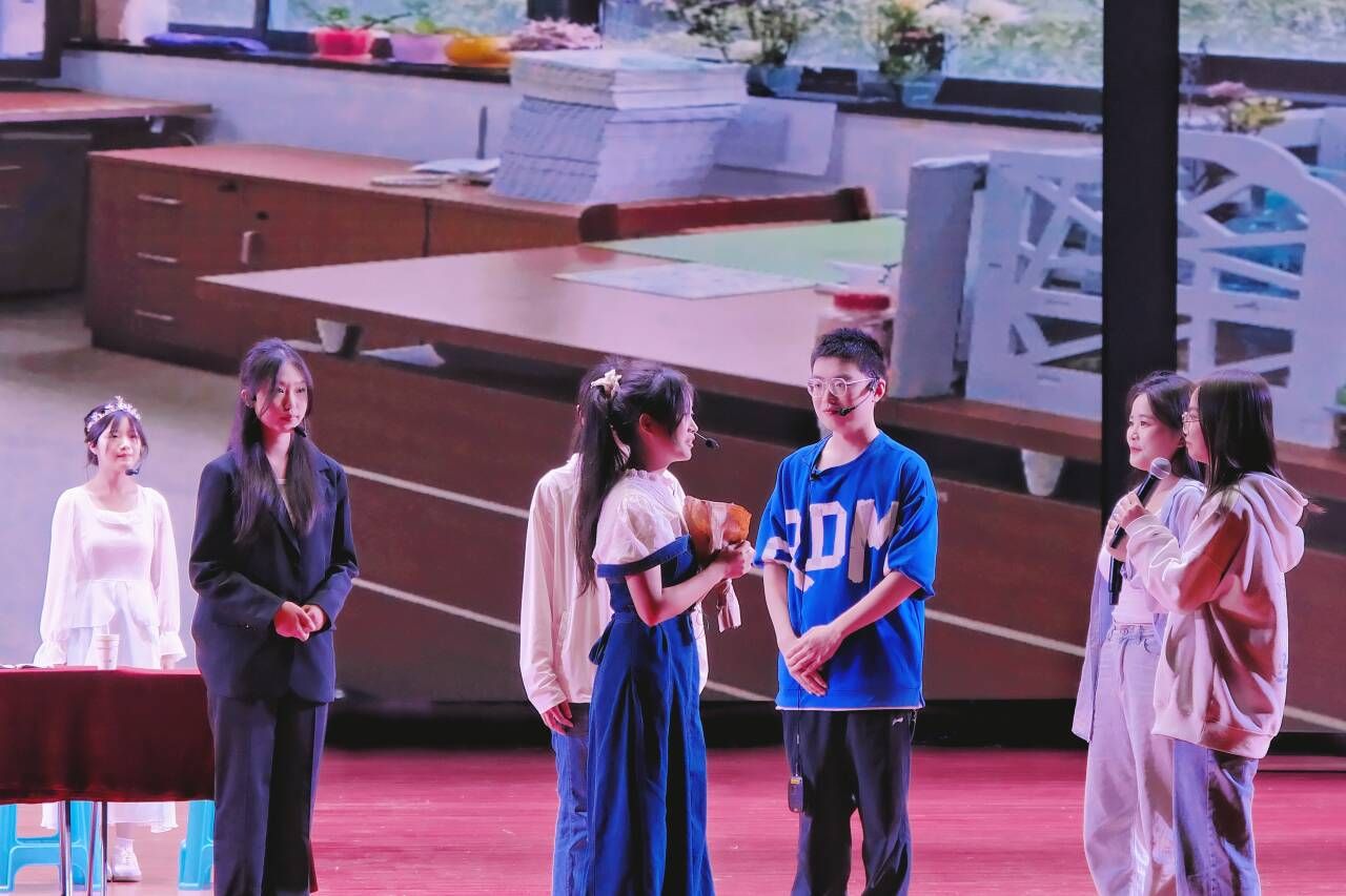 比赛中各公司参赛队伍精彩的表演,将现场的气氛推向了高潮。其中,公司的参赛剧目《你的人生是旷野,不是赛道》围绕主人公考研失败这一事件展开,在母亲的关怀、伴侣的陪伴和朋友的鼓励下,主人公最终得以释怀。连贯而富有新意的故事情节让同学们懂得在任何时候都要以积极的心态面对生活、接纳自我。最终,公司参赛演员们用眼泪与欢笑诠释了“体验信任希望,展示青春力量”这一大赛主题,并且凭借剧本取材的真实性和参赛队员们引人入胜的表演赢得了现场观众的热烈掌声。公司剧目《你的人生是旷野,不是赛道》获得了三等奖。