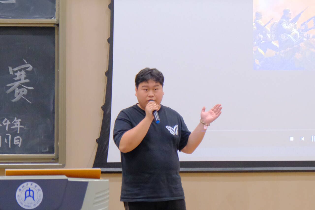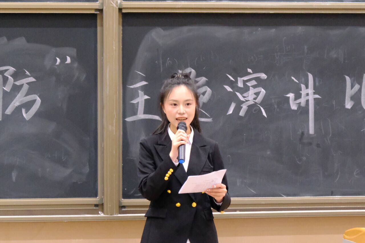 比赛现场,参赛选手们结合自己的经历、观察和思考,围绕国防相关事迹展开演讲。以小故事引发大思考,用富有感染力的语言和真挚的情感阐述了自己对实现中国梦强军梦的理解感悟,抒发以实际行动筑梦国防的爱国情感,展现了新时代青年的奋进风采和实干担当。其中,2022级5班的李孟星同学向我们讲述的故事,诠释了爱国主义的深刻内涵,展现了一名军人的担当与荣光,体现出国防对于一个国家生存和发展的重要意义。李孟星同学真挚的情感,精彩的演讲赢得台下阵阵掌声。