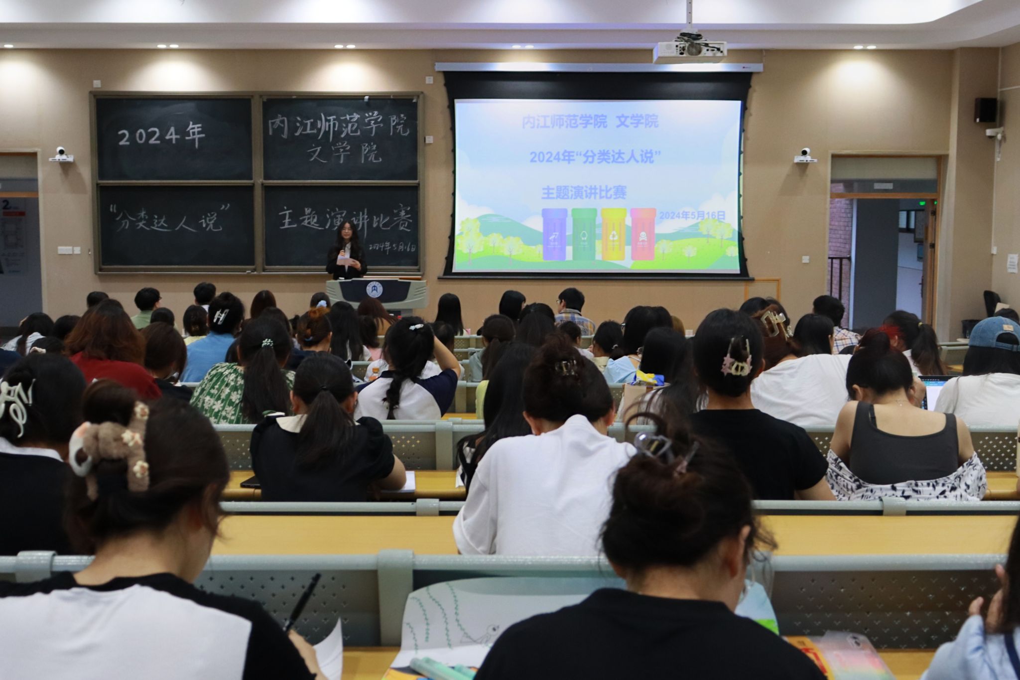 为锻炼公司学子语言表达能力,推广垃圾分类知识,5月16日晚上7点30分,公司于明德楼B区212教室举行了2024年“分类达人说”老员工主题演讲比赛。公司党委副书记、纪委书记刘正丽,学工办副主任金夏老师,学工办辅导员汤靓、雷业老师,公司第八届团总支副书记(员工)王睿,第八届团总支员工会主席团成员彭雪怡、谌传昊出席本次演讲比赛,公司部分员工参与,文苑之声赵思怡主持。