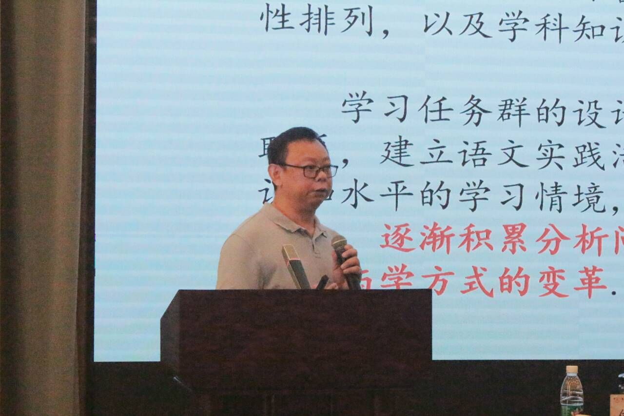 讲座由于军民副经理主持。梁经理为何立新老师颁发客座教授聘书。何立新老师阐述了学习任务群概念内涵及其教学价值,尤其对发展型学习任务群进行了深入剖析。分享了在学习任务群语境下,语文教材体系如何建模,如何理解“任务”及“任务群”等核心概念。围绕为什么读、读什么、用什么读、怎么读、读到什么程度阐释了阅读教学主要任务,提出了“结构化文本组合”的新理念。何老师重点就学习任务群语境下的多样态阅读教学实施方案做了深度交流,其提出的单篇教学也要有整体思维,通过“降维”变整本书阅读为单篇、多篇阅读,多文本阅读催生高阶思维等教学策略及理念给人深刻启发。