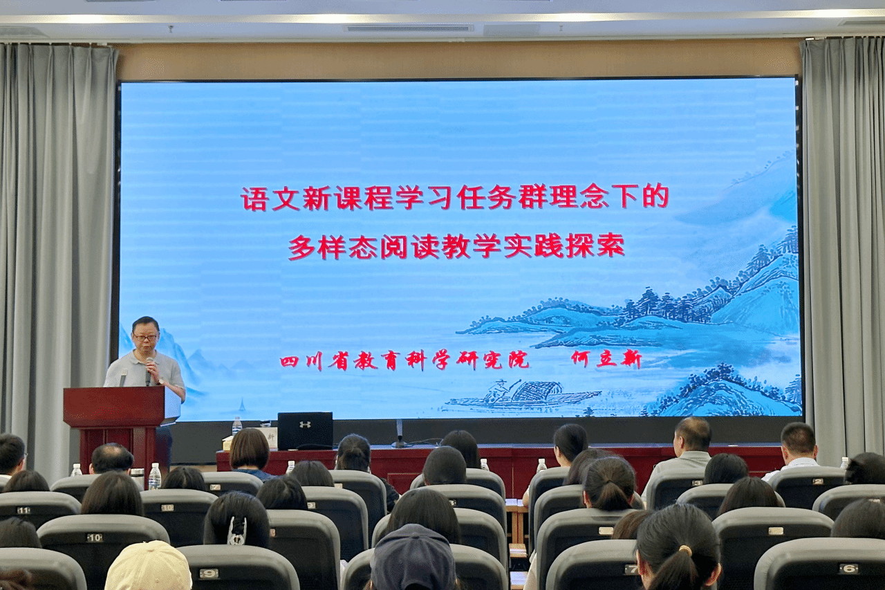 为深化公司汉语言文学专业师范生对新一轮基础教育课程改革的正确认识,5月24日上午, 公司邀请教育名家、著名语文特级教师何立新老师在公司会议中心小报告厅做了题为“基于学习任务群语境的多样态阅读教学实践探索”学术讲座。公司党委副书记、副经理(主持工作)梁明玉,副经理于军民,经理助理王昕,语文教学论教研室全体教师,我市部分一线中学语文教师及汉语言文学专业师范生代表共100余人聆听报告。