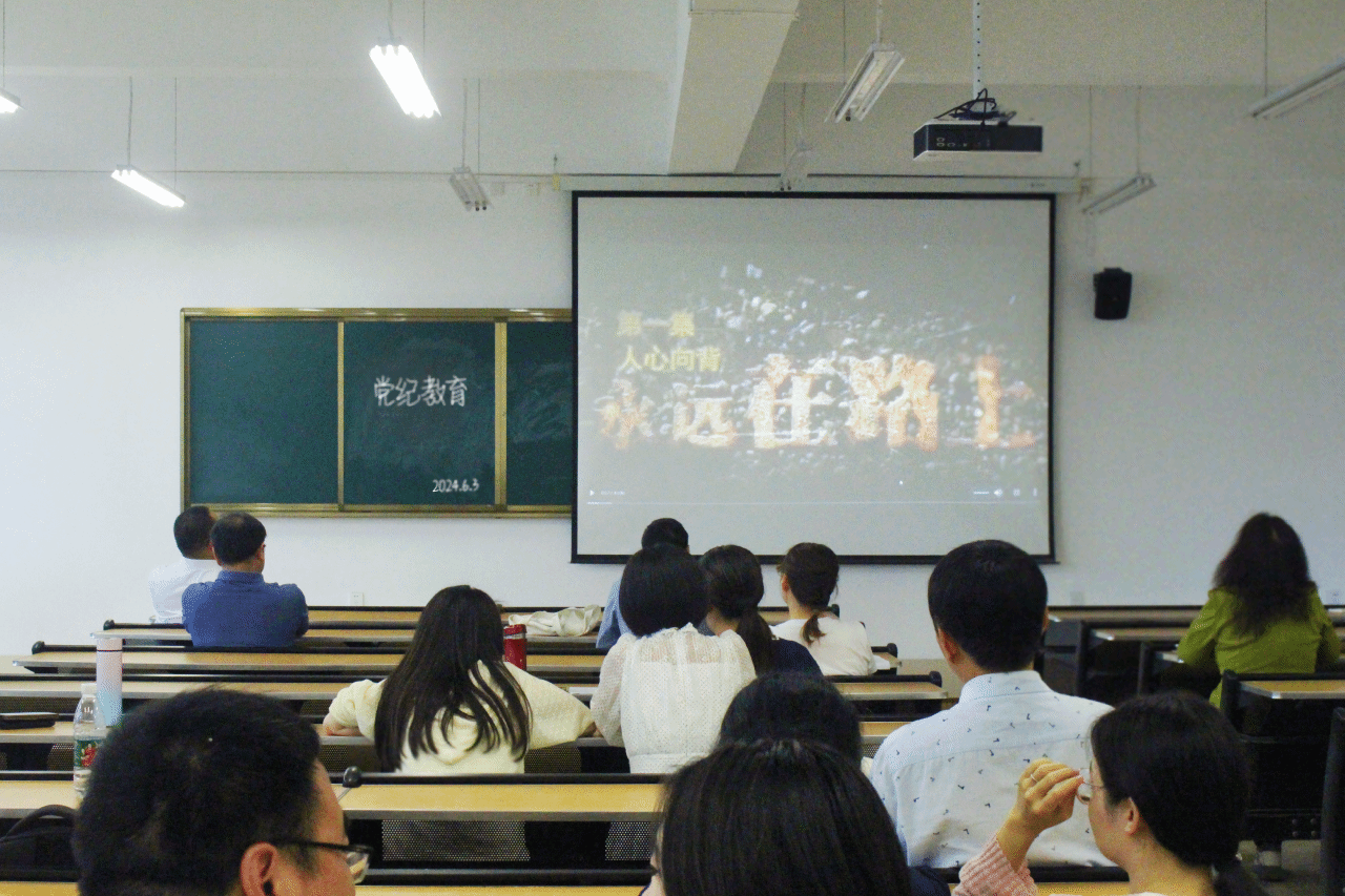 周书记首先为大家阐述,本次观影活动的举行目的是提高党员教师的警觉性,明确纪律红线;随后,播放了影片《永远在路上》第一集《人心向背》,该片详细叙述了部分官员走向腐化堕落的过程,案件以当事人现身说法,穿插办案人员、专家学者的讲述和分析,通过真实案例反映官员腐败化的现状,也显示出党中央坚持党要管党、从严治党,坚定不移推进党风廉政建设和反腐败斗争的决心。影片结束后,周书记进行总结,他表示,全面从严治党永远在路上,没有休止符,只有进行时,各位党员同志一定要认识到廉洁教育的重要性、长远性,做到严于律己,坚决维护党和国家的利益。