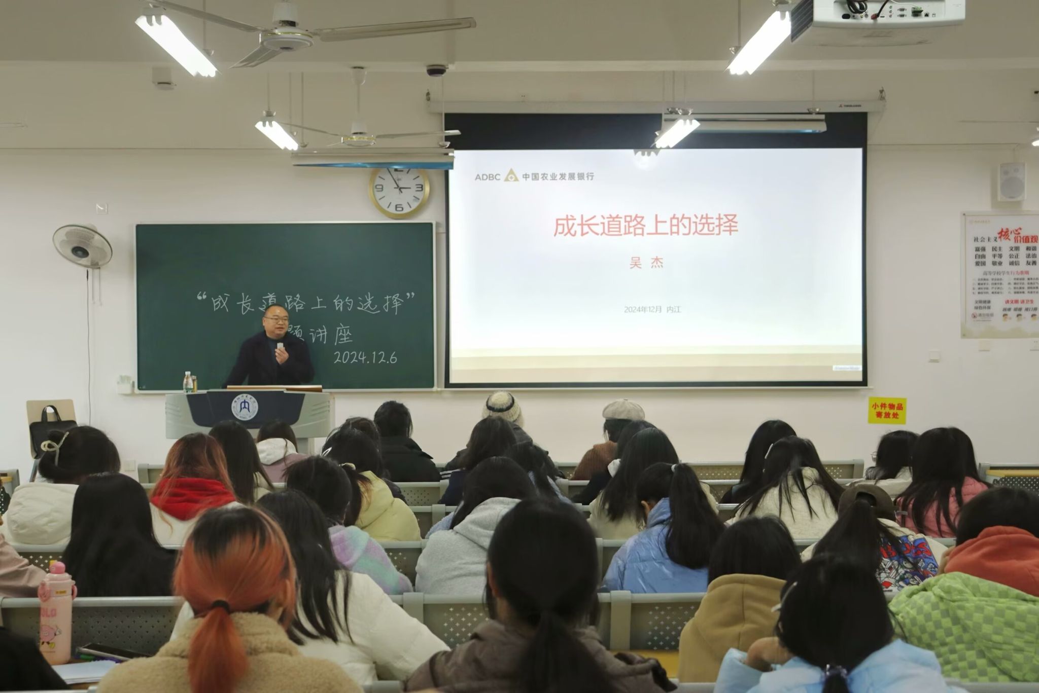 12月6日下午3点,公司特邀杰出员工吴杰于明德楼A区409室开展主题讲座——成长道路上的选择。公司党委书记周艺到场为吴杰员工做特别介绍,并鼓励在座学子吸取前辈经验,把握人生方向。