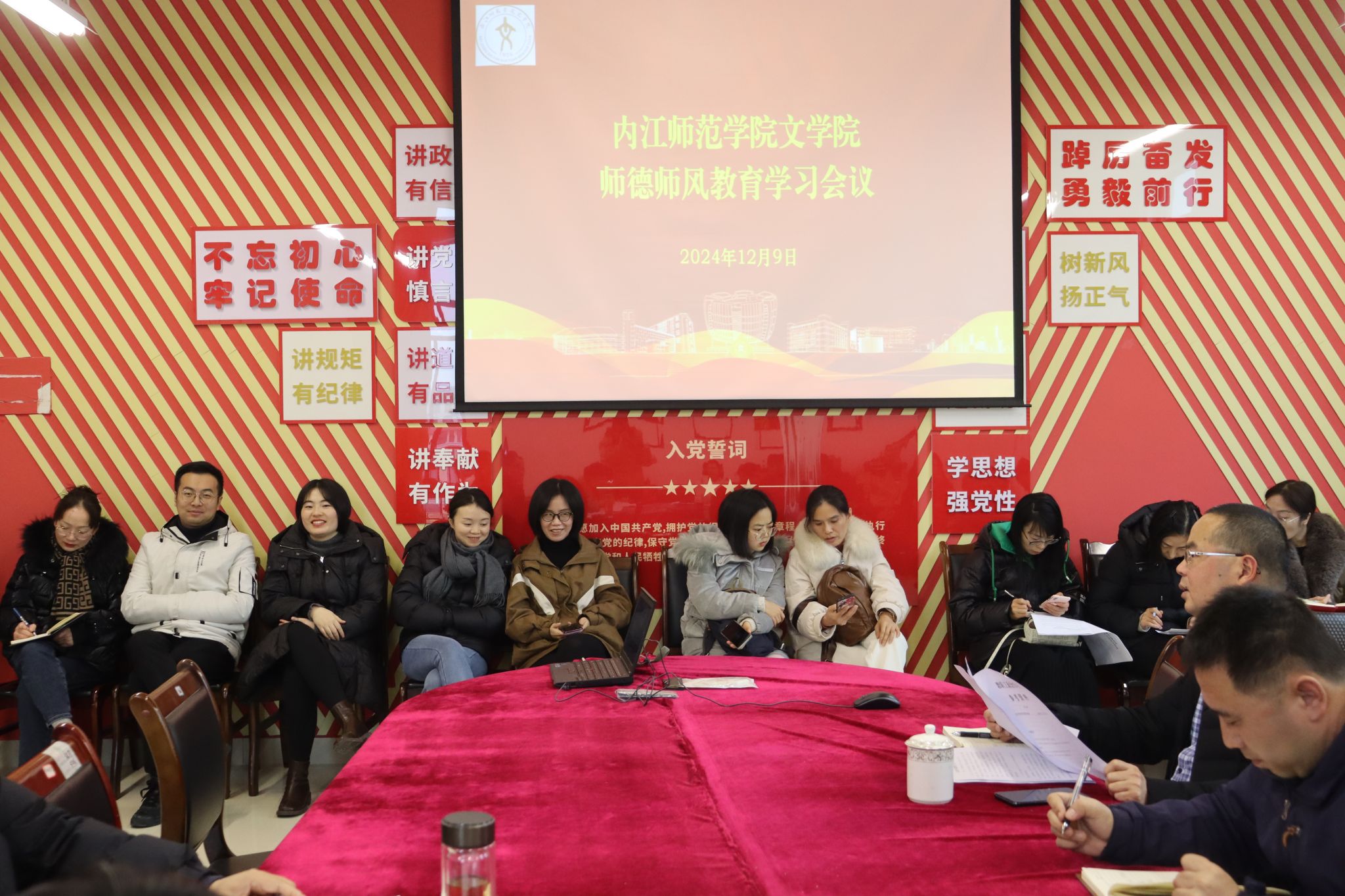 公司于12月9日在弘文楼506室召开了师德师风教育学习会议,全体教职工参会。会议旨在深入学习贯彻习近平总书记关于教育工作的系列重要讲话精神,强调教师的责任感和使命感,全面提升教师队伍的整体素质。