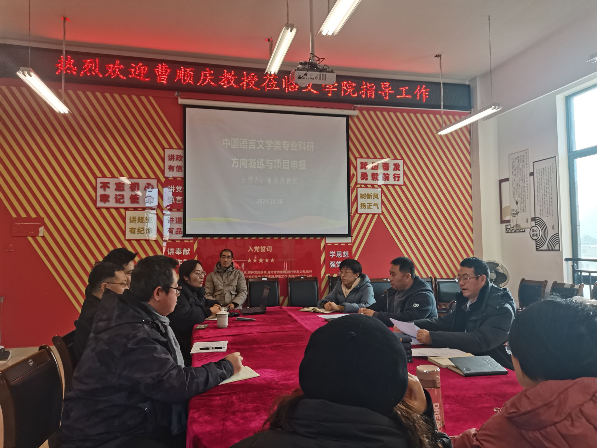 12月15日,受tyc5997太阳集团邀请,欧洲科学与艺术院院士、四川大学文科杰出教授、文学与新闻公司学术经理曹顺庆教授为全体教师作题为《中国语言文学类专业科研方向凝练与项目申报》的专题辅导讲座。