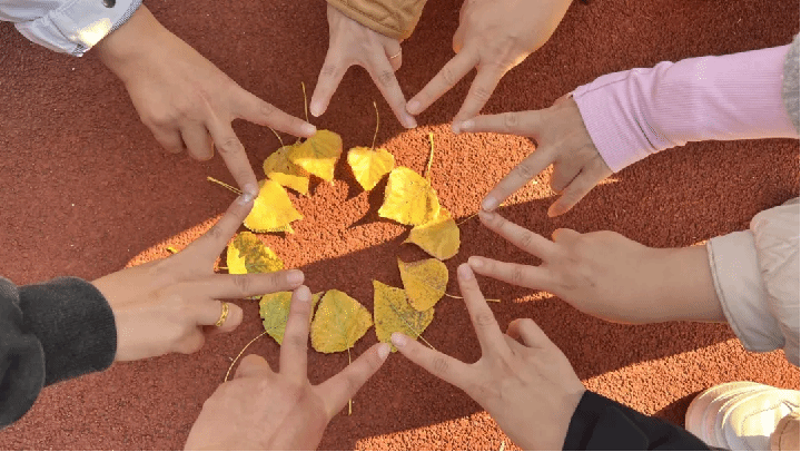 美丽的秋色醉人,老师们纷纷采撷一抹色彩,拼贴出各种图案,摆出不同的造型,并在最喜欢的秋景前,合影留念。