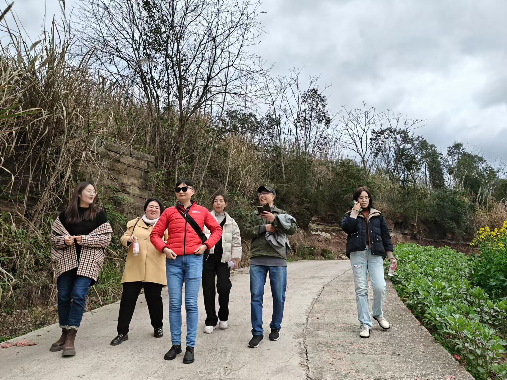 徒步路线沿长江大道垮河堰中桥而行,全长约5公里,沿途沱江沿岸水景、山石、油菜花田等自然风光美不胜收。徒步中的教师们沉浸在迷人的春光里。沱江沿岸水景宜人,江水波光粼粼,恰似一条银色的绸带绵延远方;山石错落有致,有的如利剑直指苍穹,有的似灵龟静卧江畔,各展风姿。大片的油菜花田更是夺人眼球,金灿灿的花朵汇聚成一片花的海洋,微风轻拂,泛起层层金浪,馥郁的香气扑面而来,引得蜜蜂、蝴蝶穿梭其间,忙碌地为这春日盛会增添生机。漫步其间,大家用手机定格这美好瞬间,更在心间留存下这份自然馈赠的 美丽。欢声笑语在春风中交织、回荡,为这春日的徒步之旅勾勒出一幅充满诗意与欢乐的画卷。