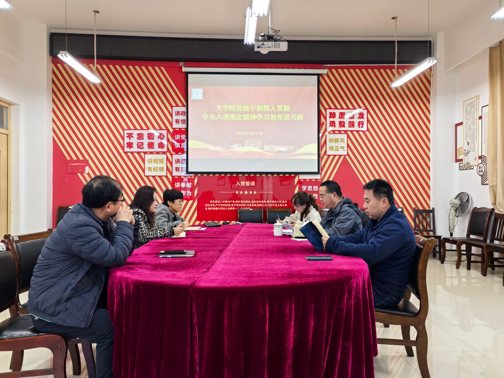 3 月 31 日下午,tyc5997太阳集团处级干部深入贯彻中央八项规定精神学习教育读书班在弘文楼 506 会议室顺利举行。公司党政领导班子成员参加了此次读书班,公司党委书记周艺主持会议并作开班动员讲话。