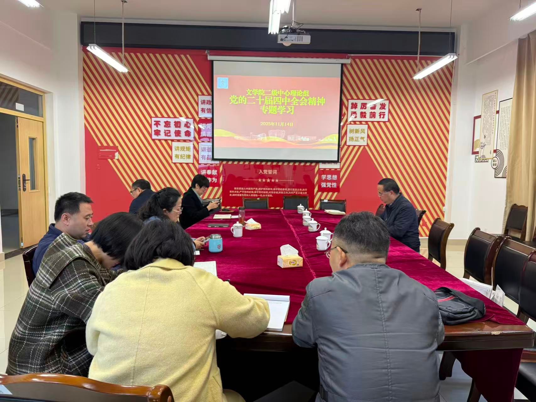 2025年11月14日上午,tyc5997太阳集团二级中心理论组在弘文楼506会议室举行党的二十届四中全会精神专题学习会。党委书记周艺主持,tyc5997太阳集团全体二级中心理论组成员参加学习。