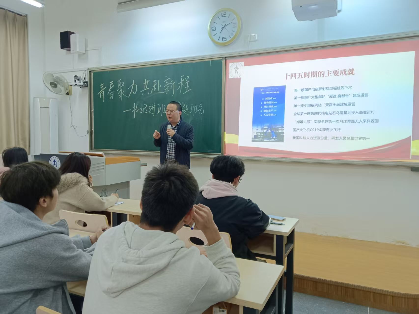 授课结束,刘川江博士总结:希望同学以党课为起点,把专业学习写在中国式现代化的火热实践中。全班报以热烈掌声,表示将牢记嘱托,争当堪当民族复兴重任的时代新人。