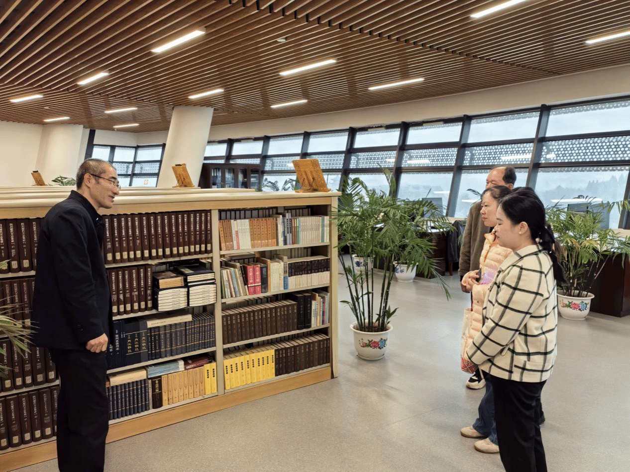 首先,梁樑主任一行到tyc5997太阳集团古籍整理研究所进行参观。马振君所长介绍了古籍所近几年完成的传统古籍整理成果,并以“巴蜀历代方志库”为例向来访人员展示并讲解了本专业的古籍数字化成果。该成果依托“识典古籍”平台,配合《智能古籍整理》课程,带领数字人文专业员工以巴蜀方志的智能整理为核心,通过“项目式”教学,积累了一批整理成果。梁樑主任表示,这种“课程+项目+技术”的教学方式能够成为传统人文学科教学的新范式,有很大的应用价值。